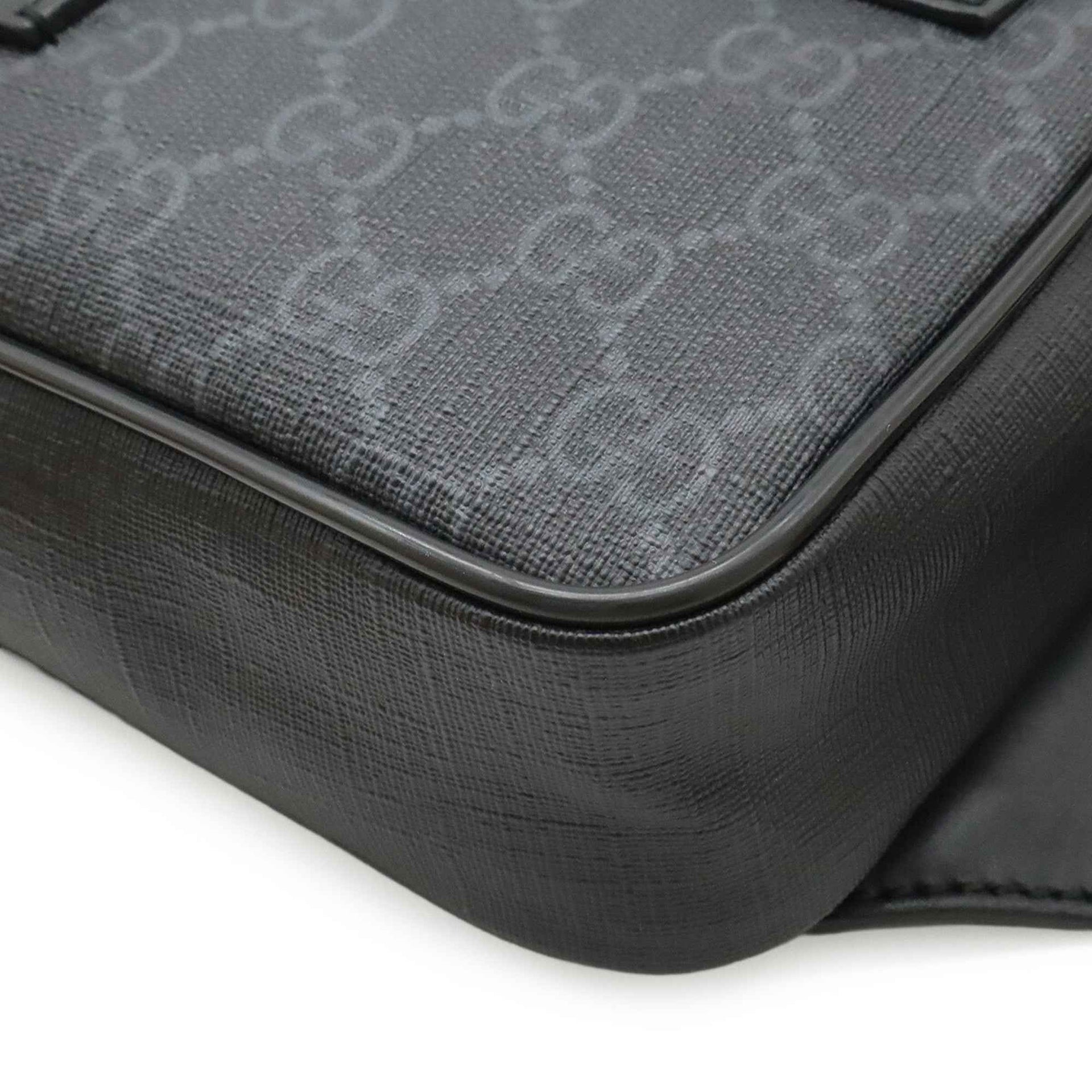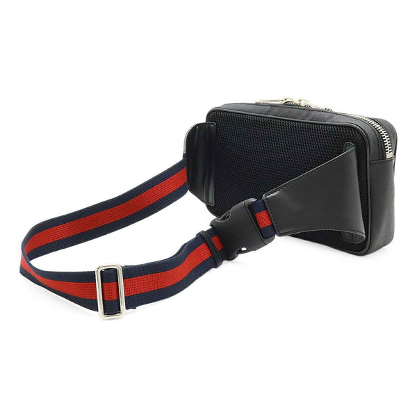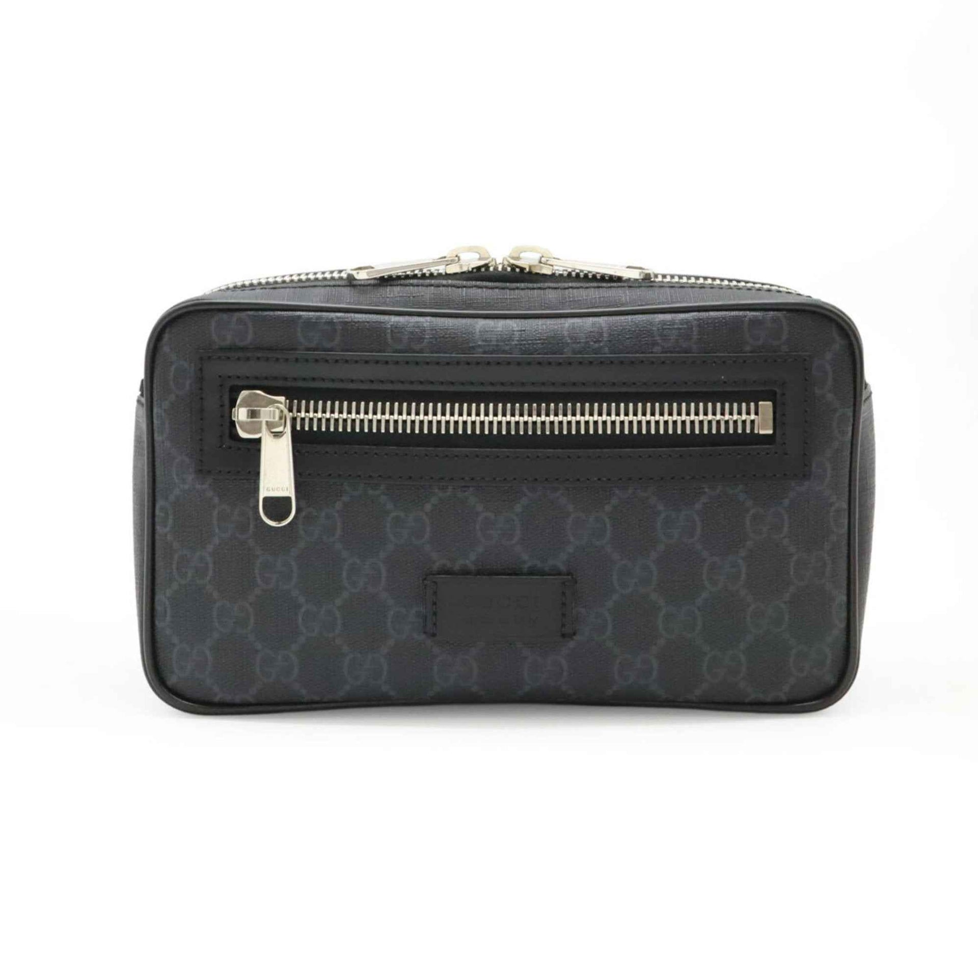 GUCCI GG Supreme Web Line Waist Bag, Body Belt Bag in PVC and Leather, Dark Gray Black, 474293