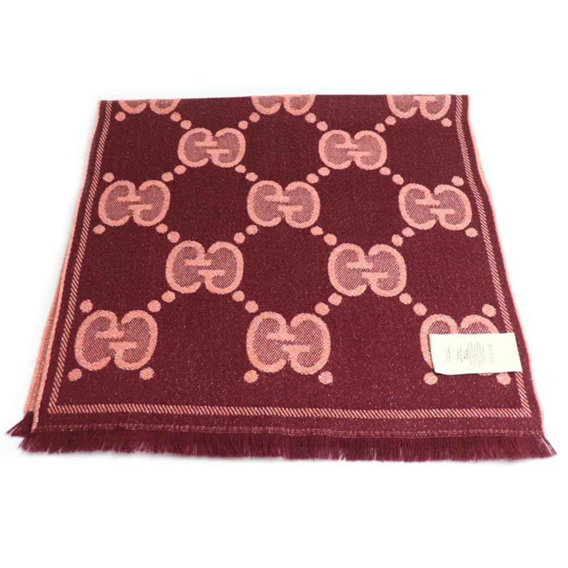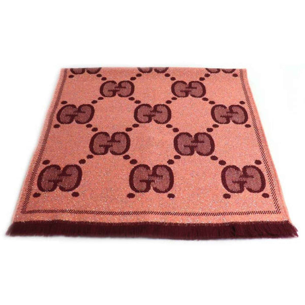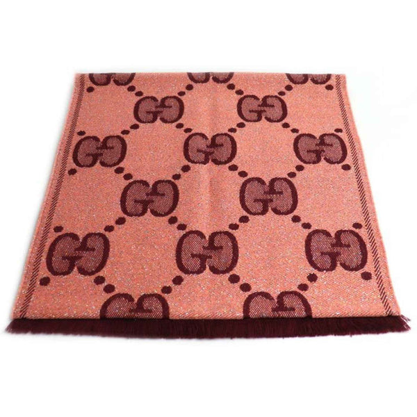 GUCCI GG Wool Lamé Jacquard Scarf/Muffler in Pink and Wine Red (598993 3GC15) for Women