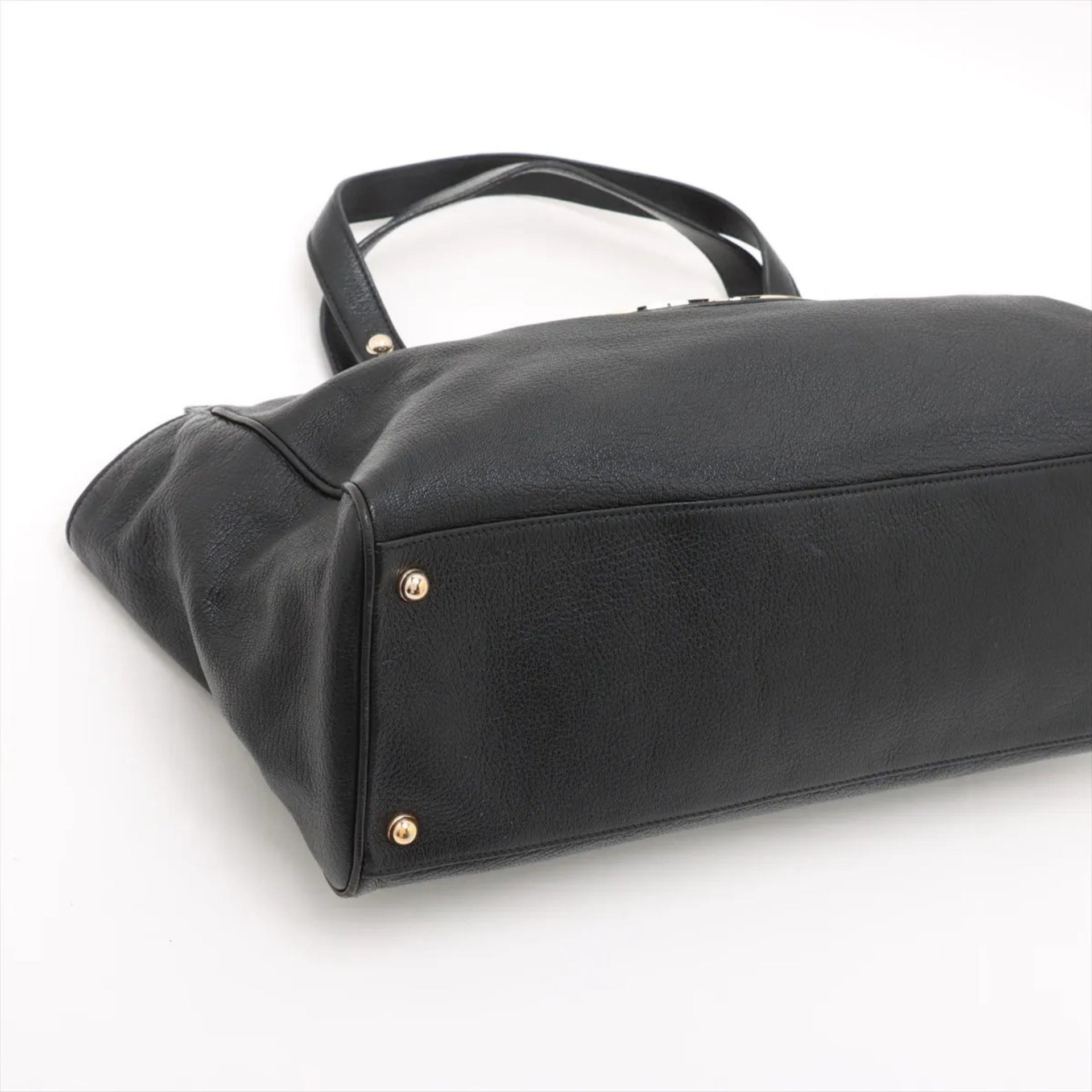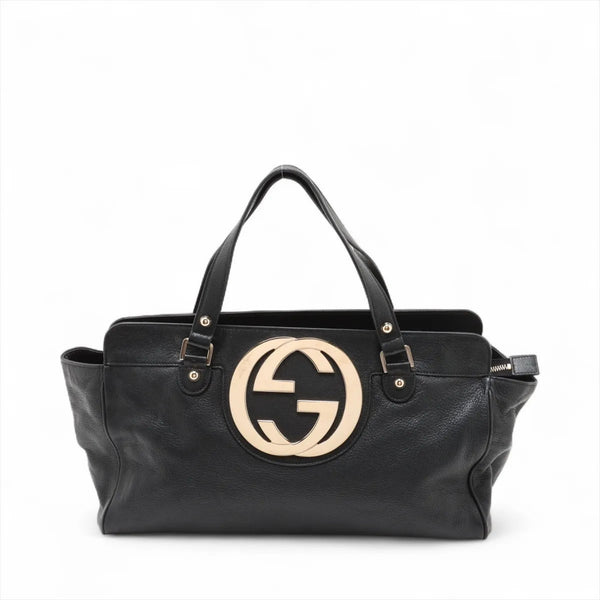 Gucci Interlocking G Leather Tote Bag, Shoulder Handbag, Black, Women\'s, 131445