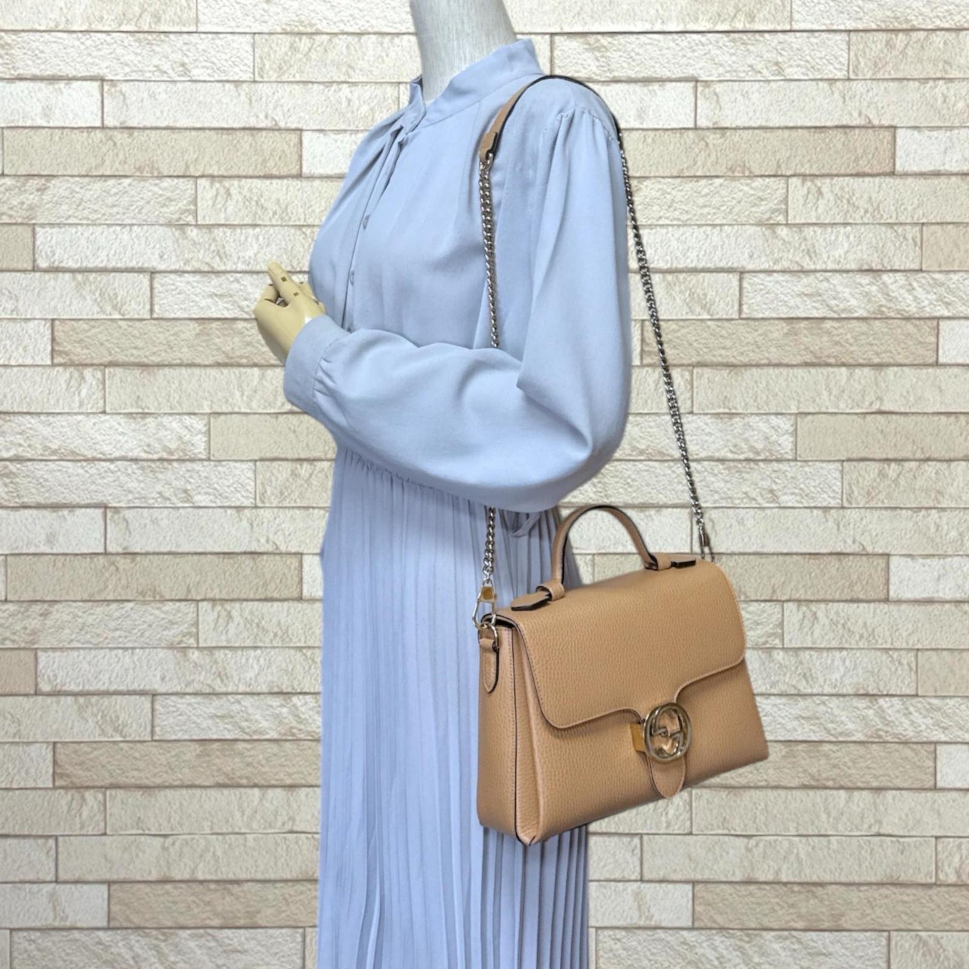 Gucci Interlocking G Shoulder Bag, Leather 510302, Beige, Women\'s, GUCCI 2-Way