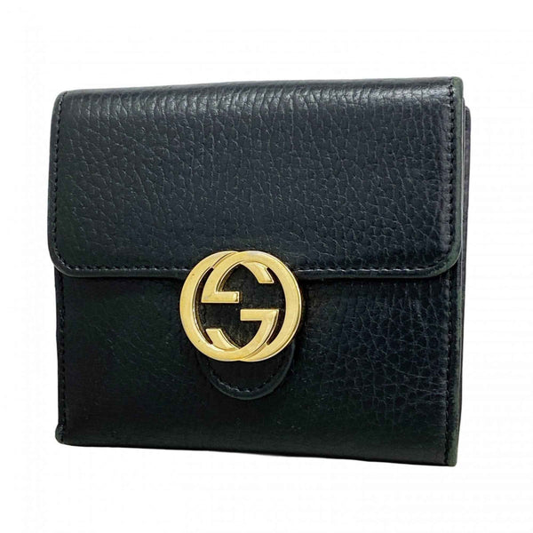 Gucci Interlocking G Wallet 615525 Leather Black Women\'s P1444347