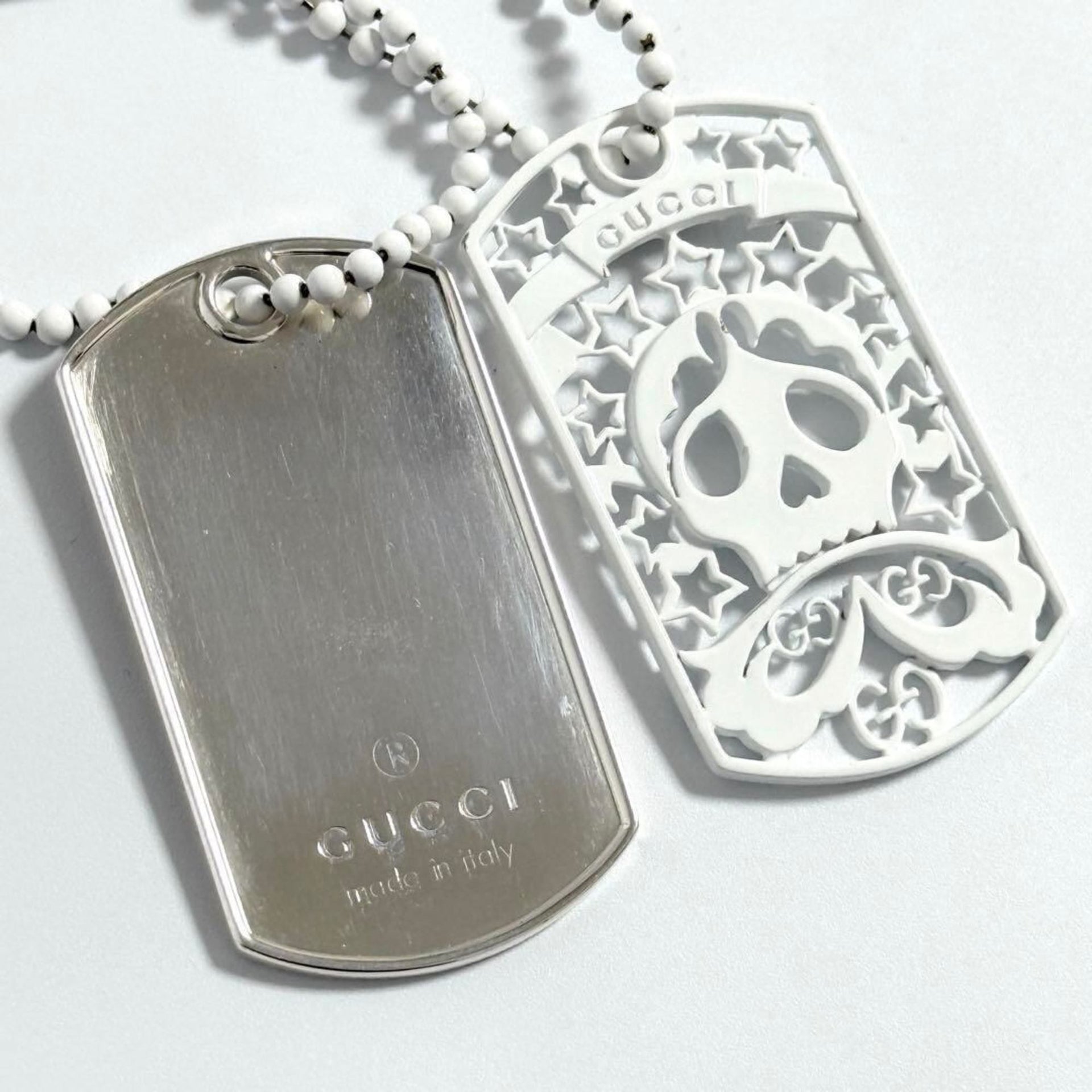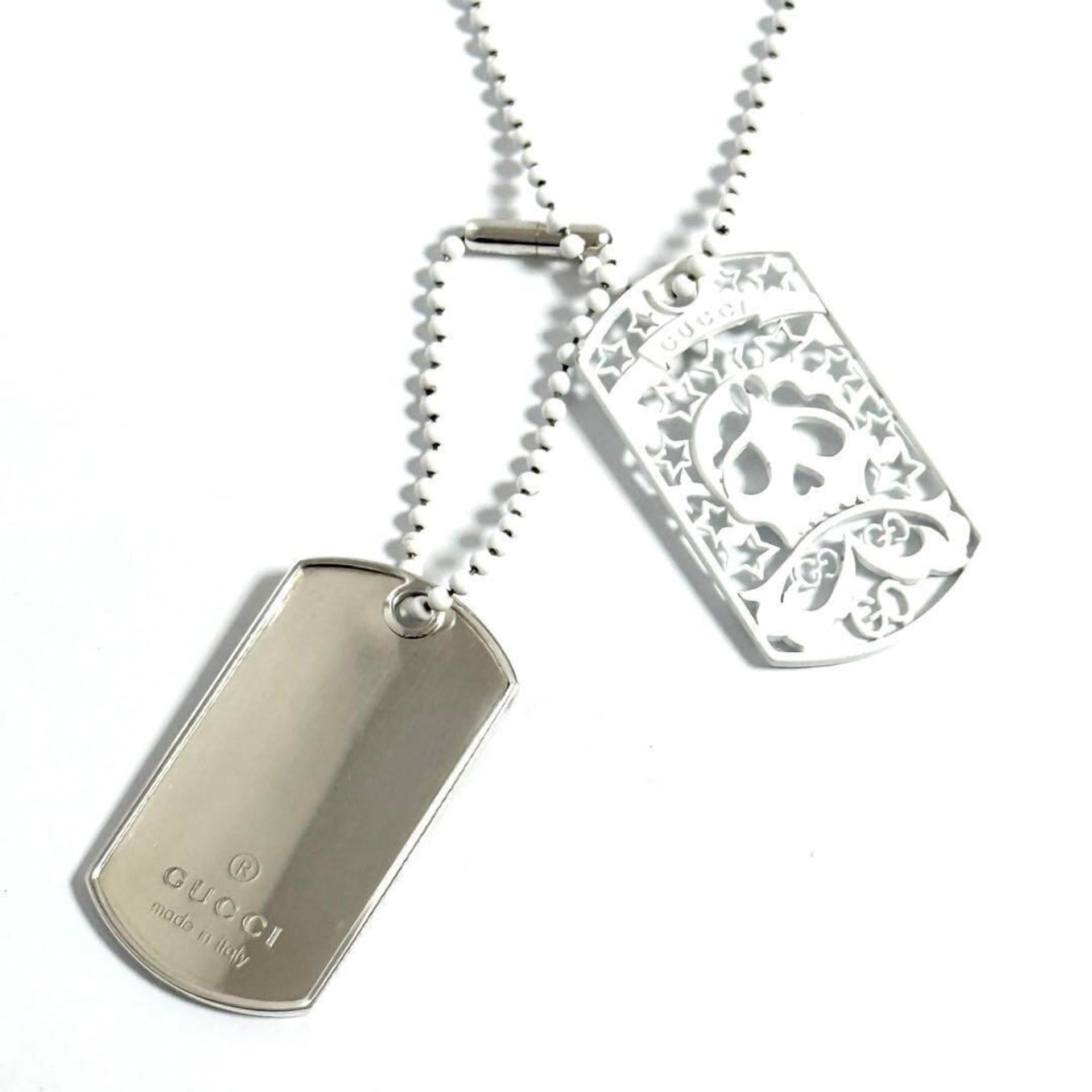 Gucci Men\'s Skull Dog Tag Pendant Necklace Silver