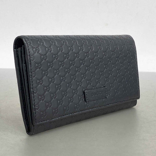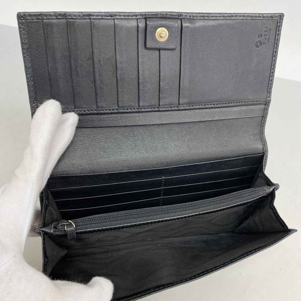 Gucci Micro Guccissima Long Wallet 449396 Leather Black Champagne Men\'s Women\'s P1455953