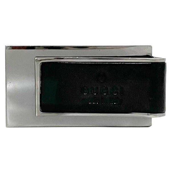 Gucci Money Clip ec-23311 Silver Black Billfold Leather Metal GUCCI Compact Men\'s Women\'s