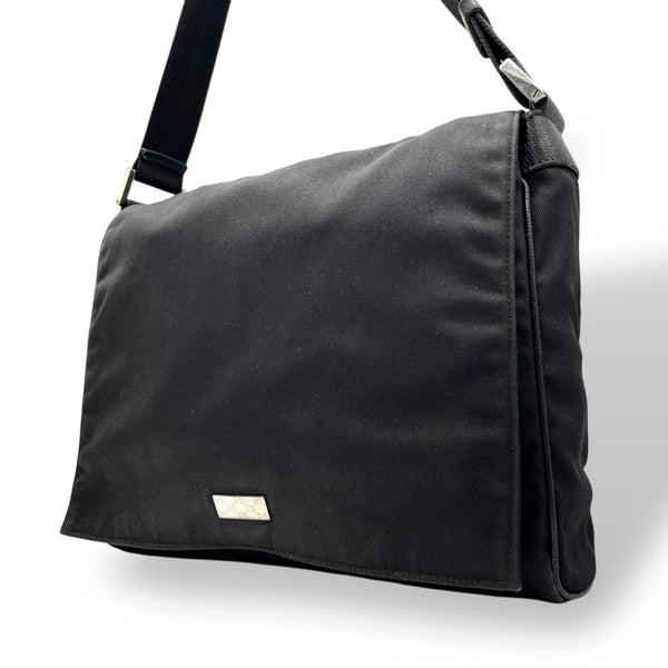 GUCCI Nylon Messenger Bag, Shoulder Bag for Men and Women, Silver Plated Logo, Crossbody 146236 K4