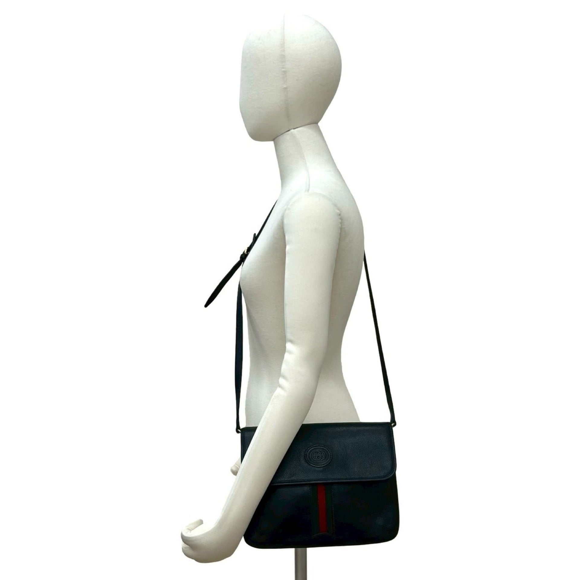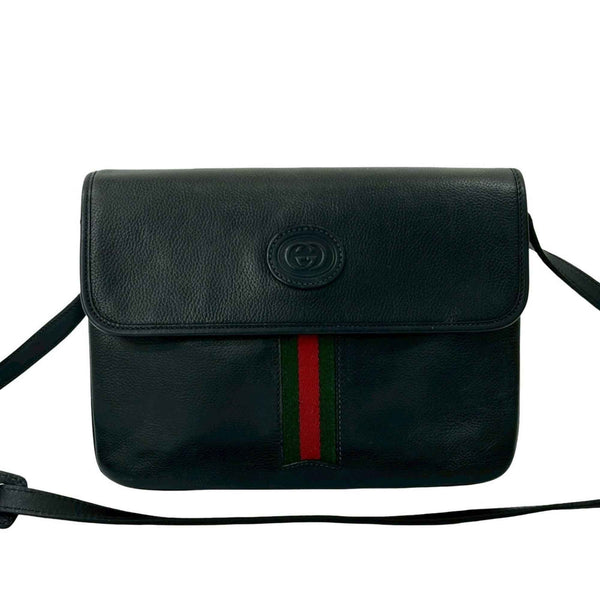 GUCCI Old Gucci Sherry Line GG Logo Leather Shoulder Bag Pochette Black 50742