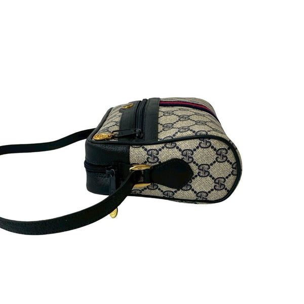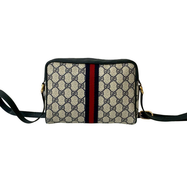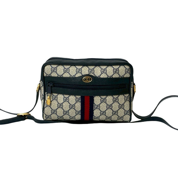 GUCCI Old Gucci Sherry Line GG Logo Pattern Leather Mini Shoulder Bag Pochette Navy Red 29302