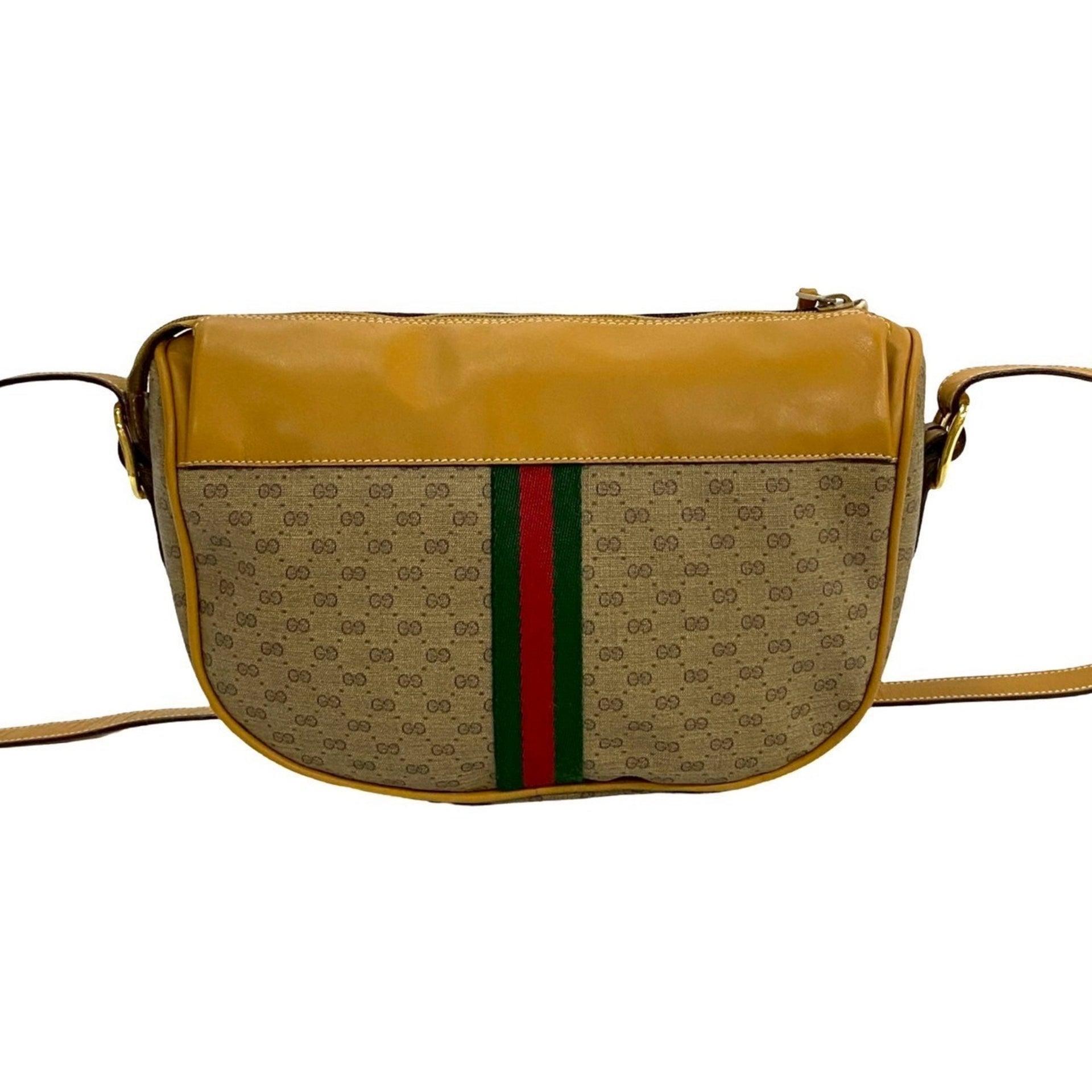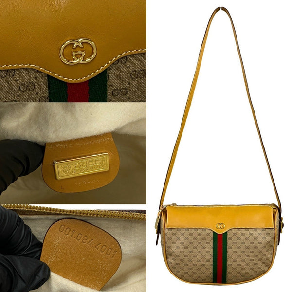 GUCCI Old Gucci Vintage Sherry Line Micro GG Logo Leather Shoulder Bag Brown Camel 174-9