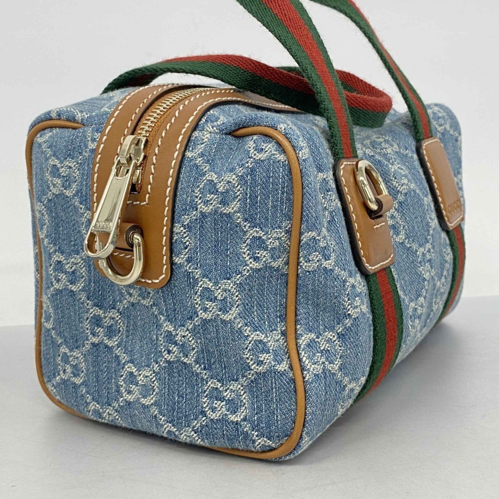 Gucci Ophidia Mini GG Handbag 859975 Denim Blue Champagne 2-Way Bag for Women