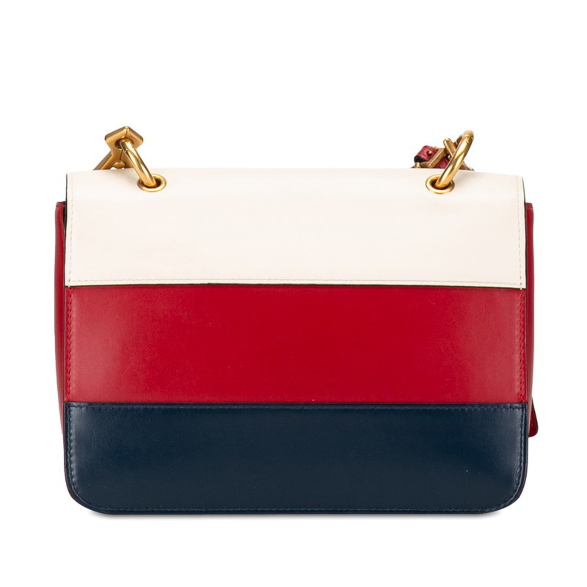 Gucci Queen Margaret Bee Tricolor Shoulder Bag 476542 White Red Navy Leather Women\'s GUCCI