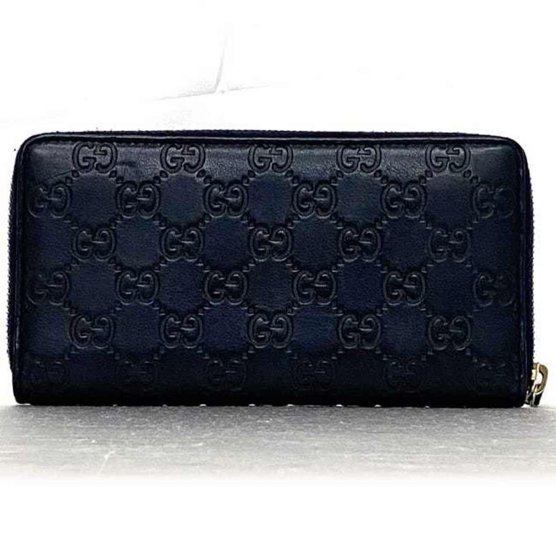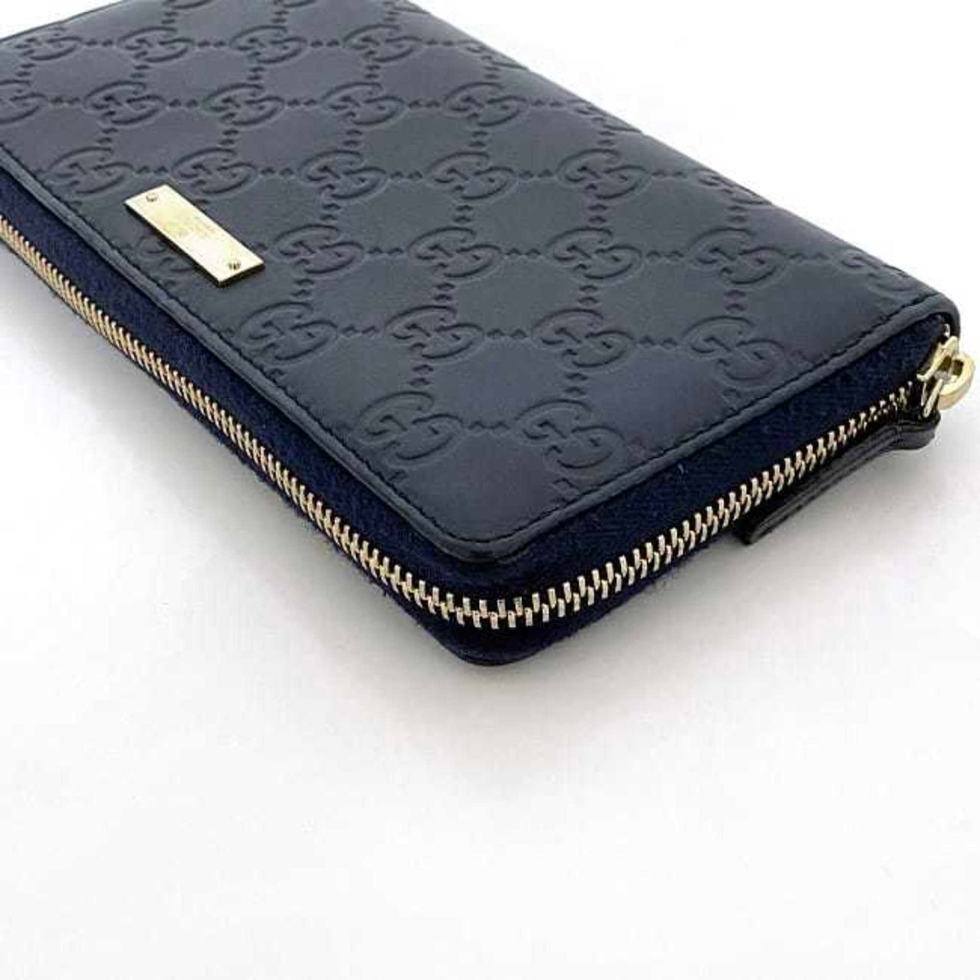 Gucci Round Long Wallet ec-23550 Navy with Shimmering Lines 307980 Leather 2067 GUCCI GG Zip-Around Embossing for Men and Women