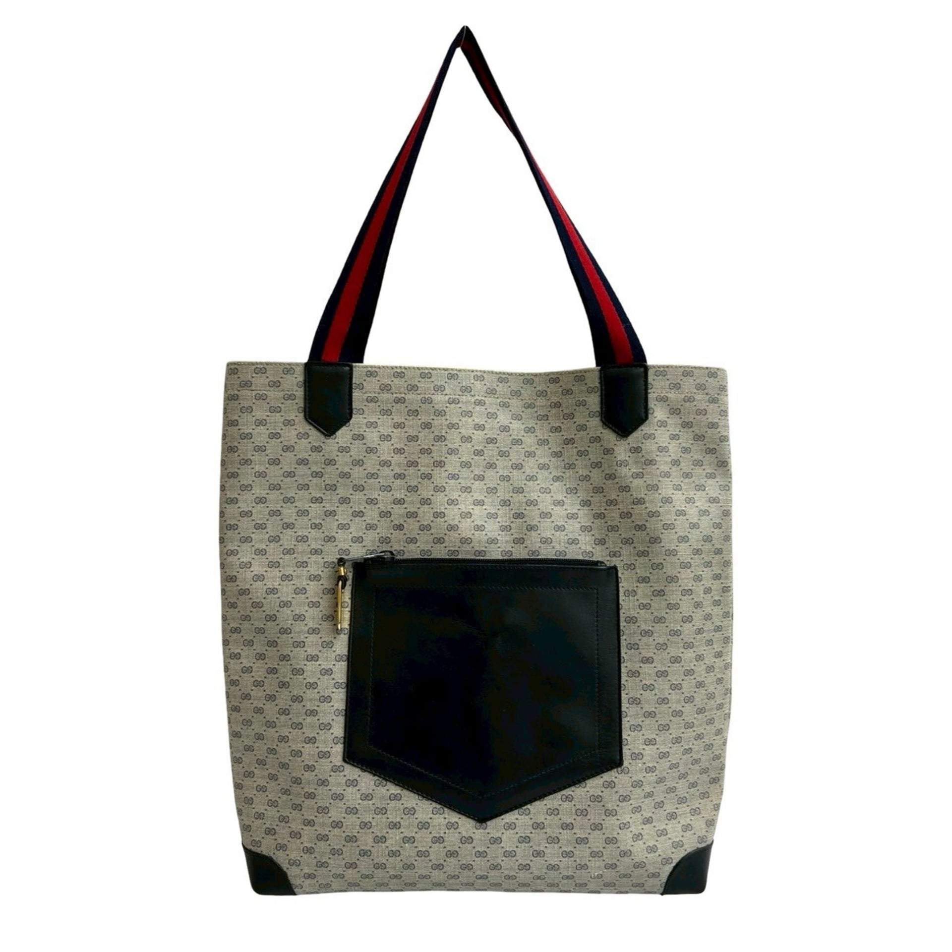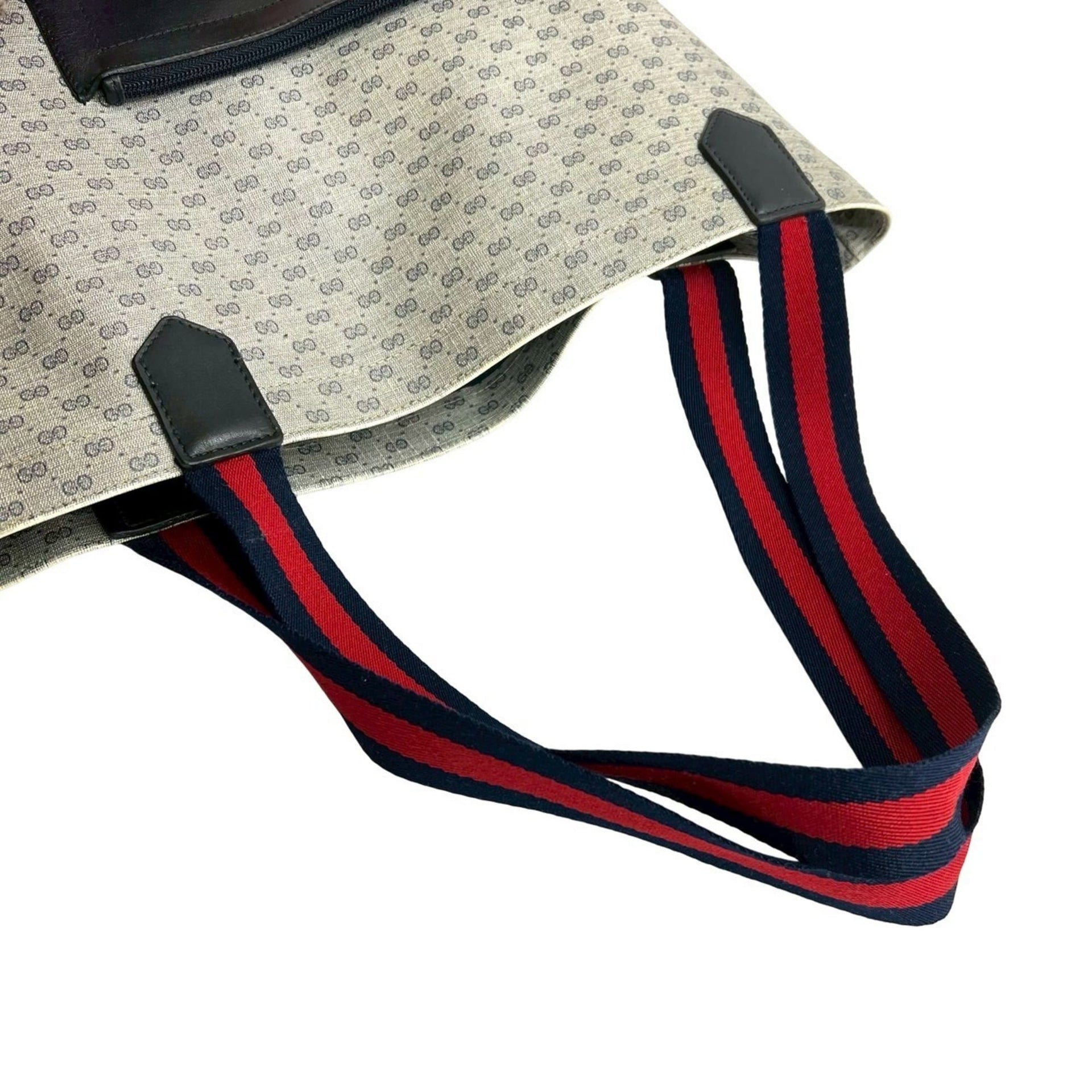 GUCCI Sherry Line Micro GG Logo Leather Tote Bag, Handbag, Semi-Shoulder Navy Red, 20536