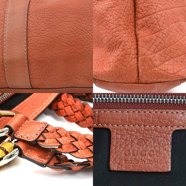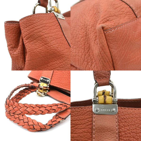 Gucci Shoulder Bag, Bamboo Leather, Reddish Brown, Silver, Women\'s, 232947 w1285a