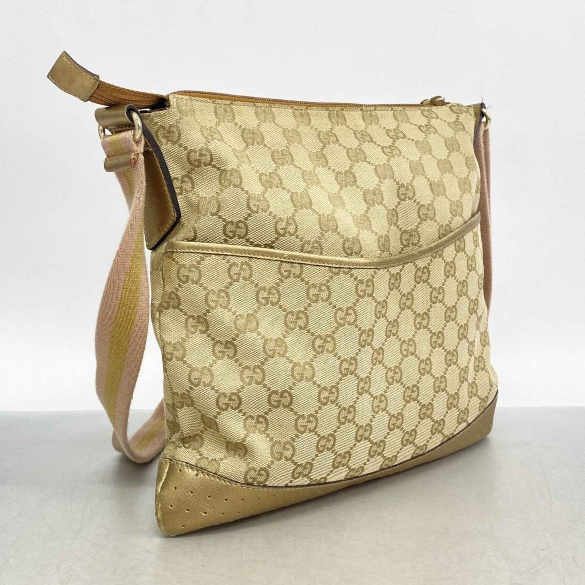 Gucci Shoulder Bag GG Canvas 145857 Beige Gold Champagne Women\'s