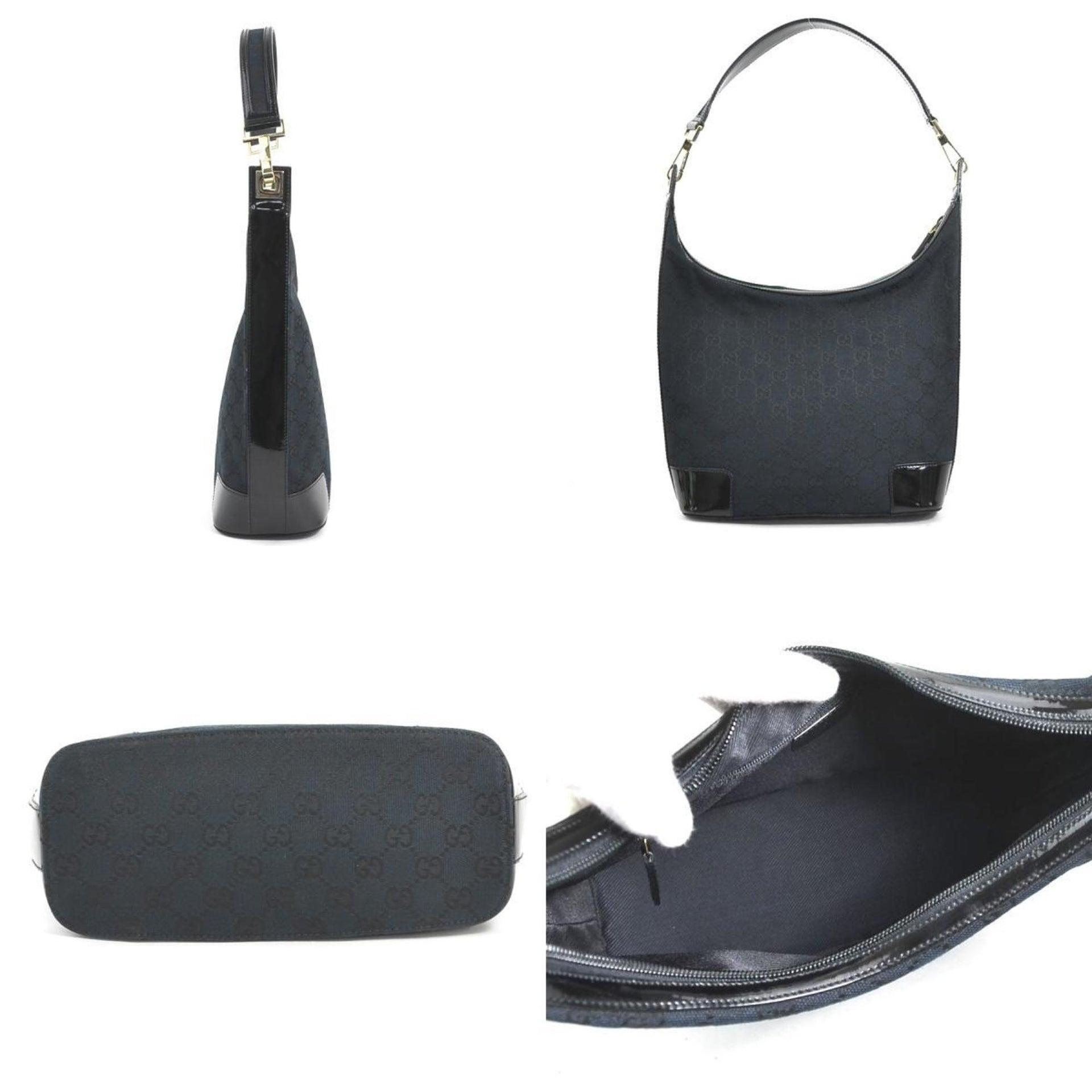 GUCCI Shoulder Bag GG Canvas Patent Leather Black Gold Women\'s e60258i