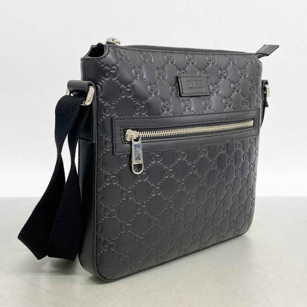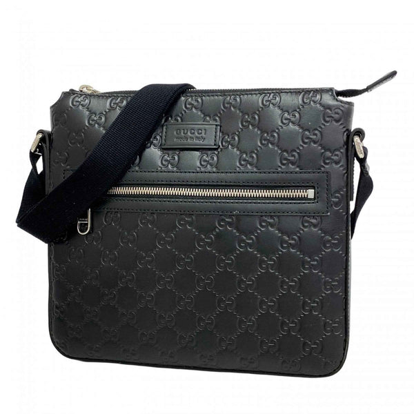 Gucci Shoulder Bag Guccissima 406410 Leather Black Men\'s