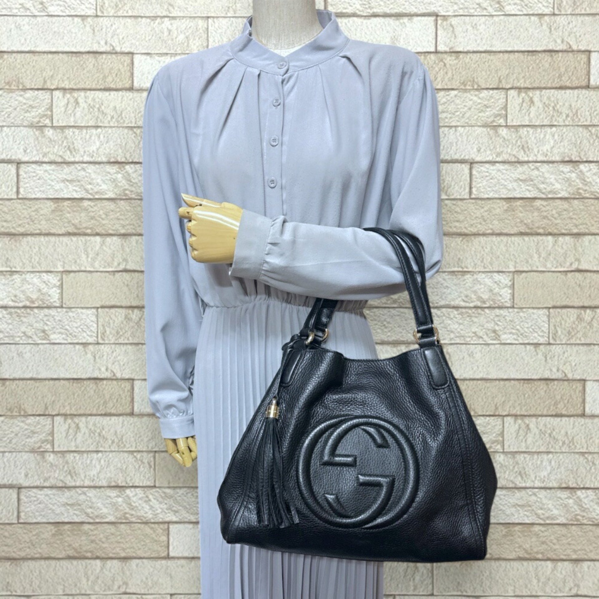 Gucci Soho Shoulder Bag, Leather, 282309, Black, Women\'s, with Tassel