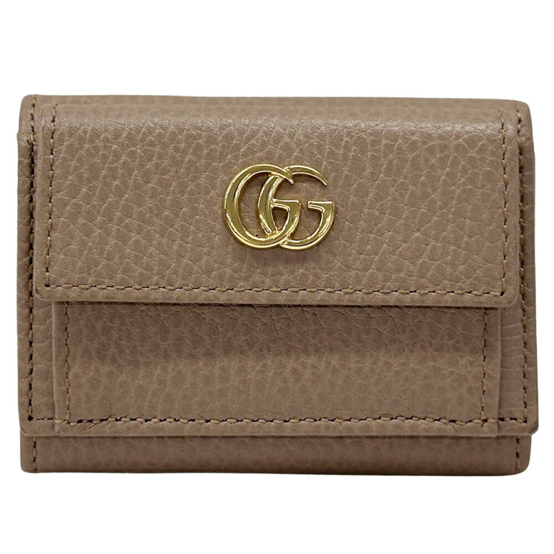 GUCCI Women\'s Wallet Petit Marmont GG Tri-fold Leather Compact Pink 523277 Beige Brown Mini