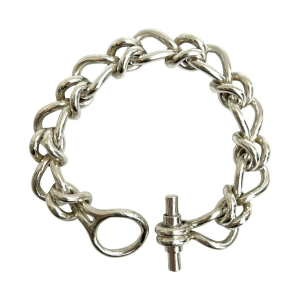 HERMES 925 Sterling Silver Bracelet Chain Bangle 25567