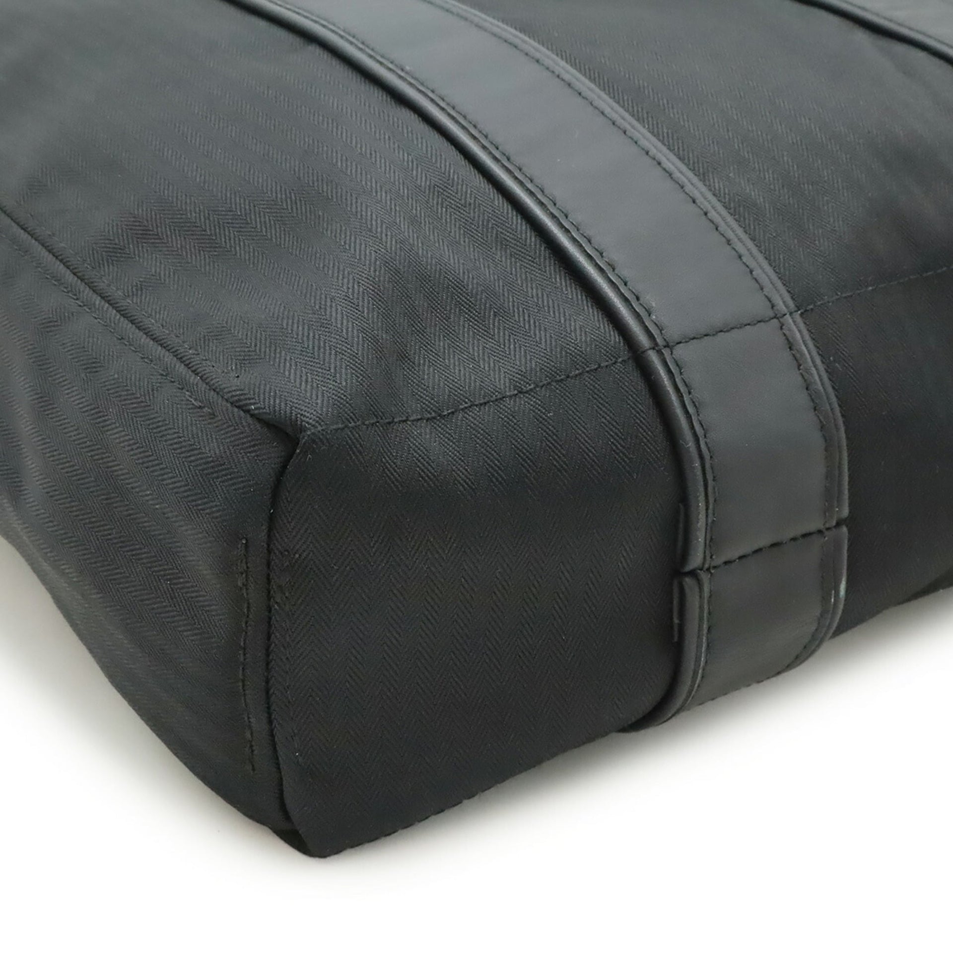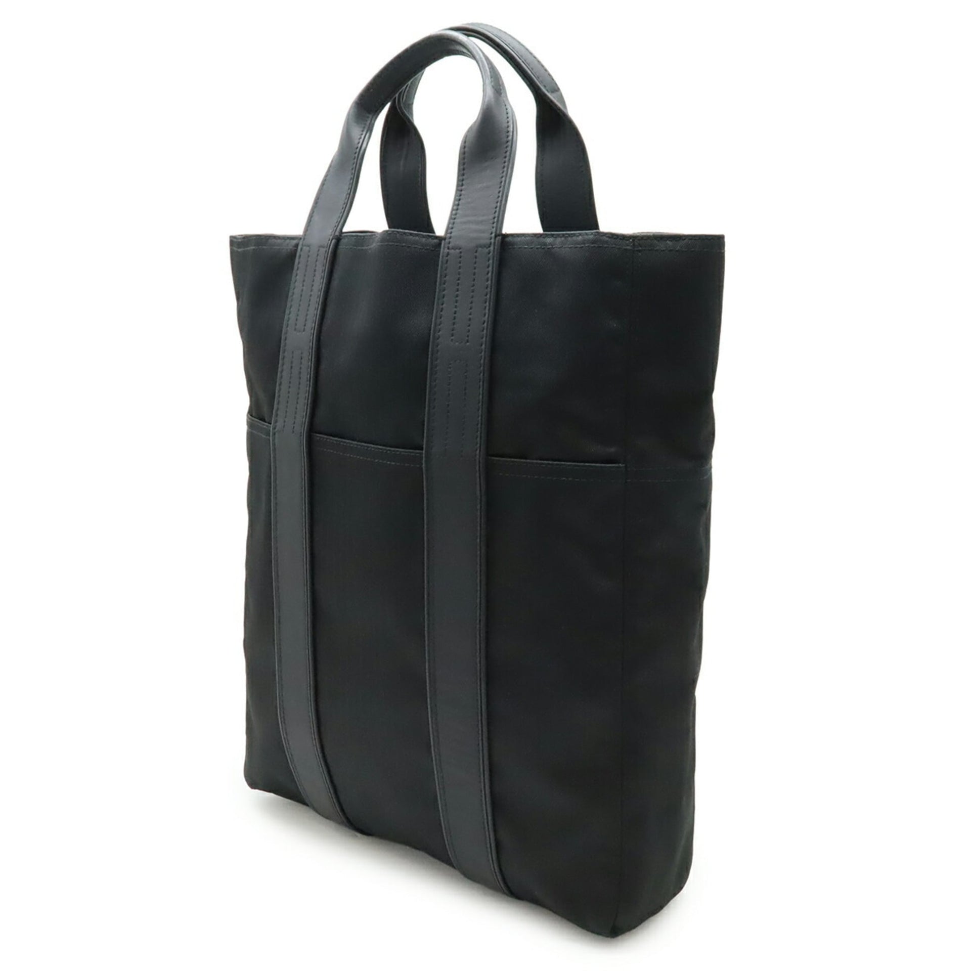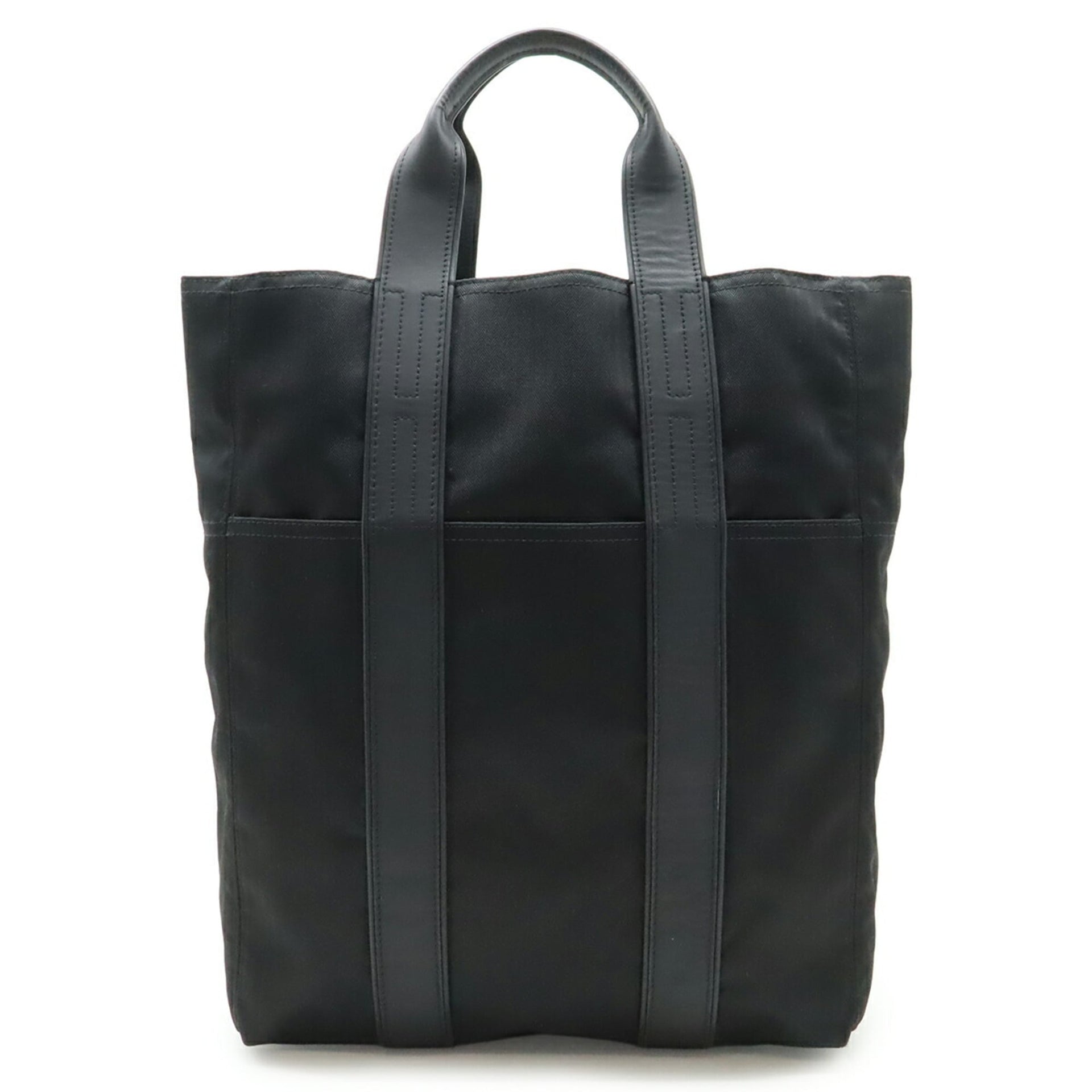 HERMES Acapulco Cabas MM Tote Bag, Large Handbag, Toile Chevron Canvas and Leather, Black