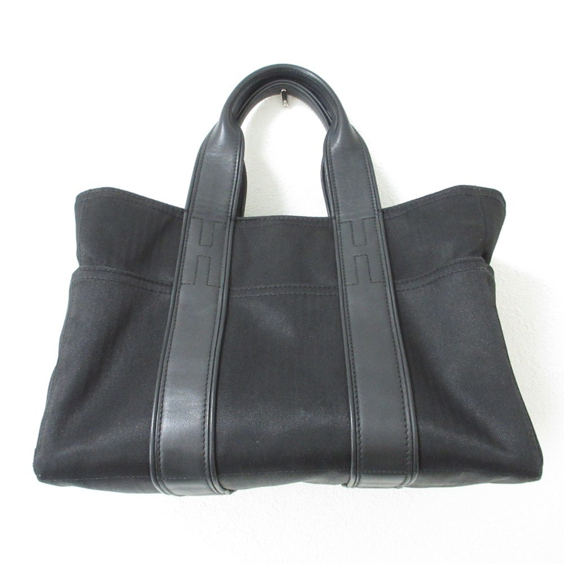 HERMES Acapulco PM Canvas Leather Tote Bag Black Men\'s Women\'s
