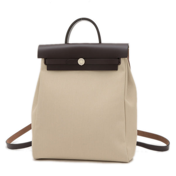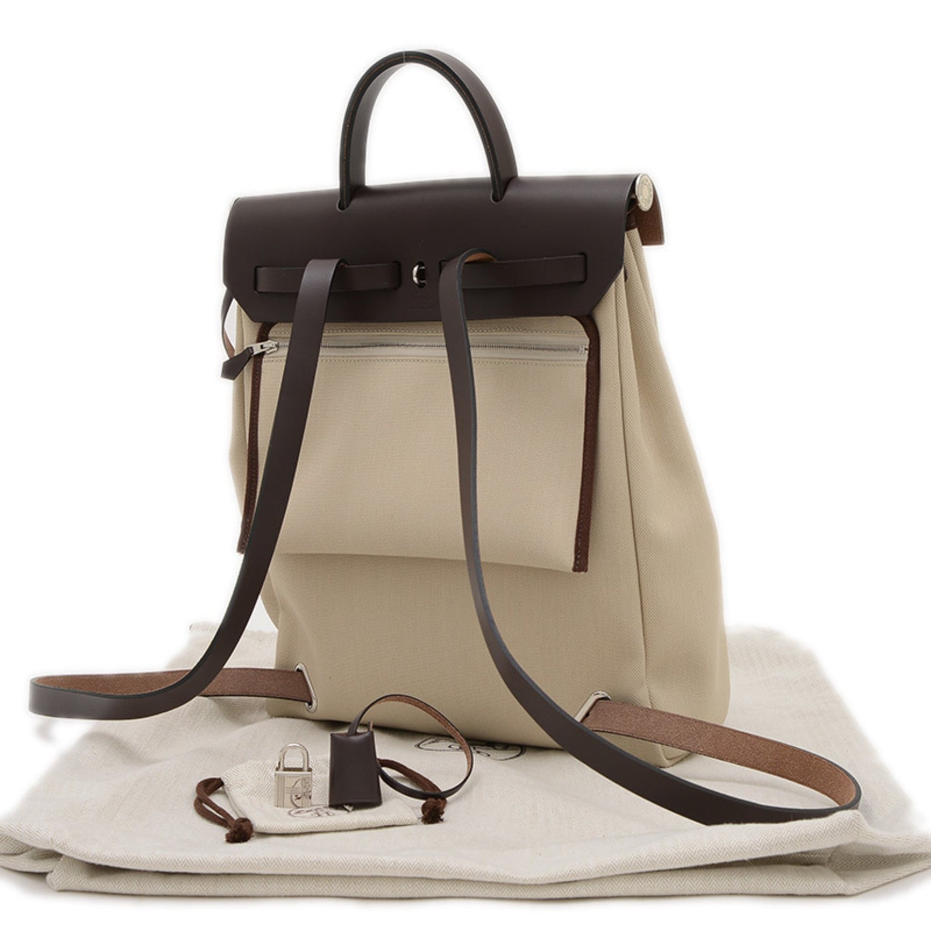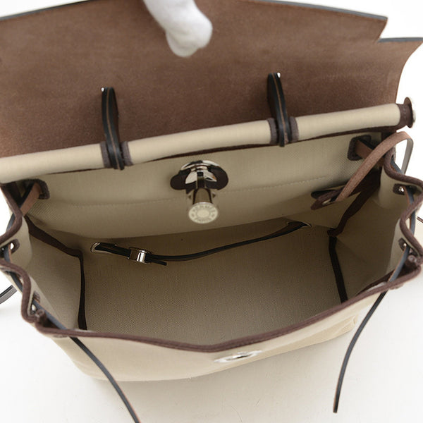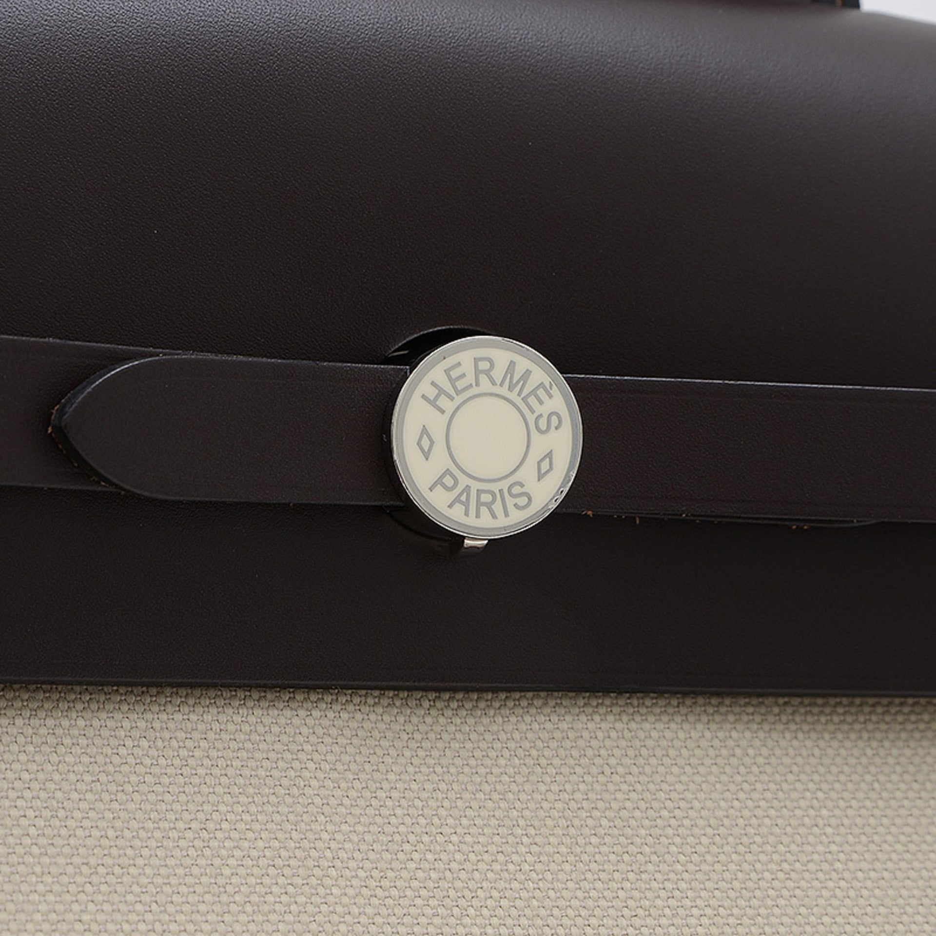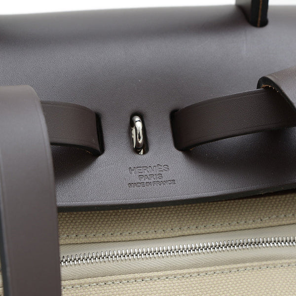 Hermes Airbag Zip-Ado PM Tote Bag Toile Leather Brown Beige U Stamp BP