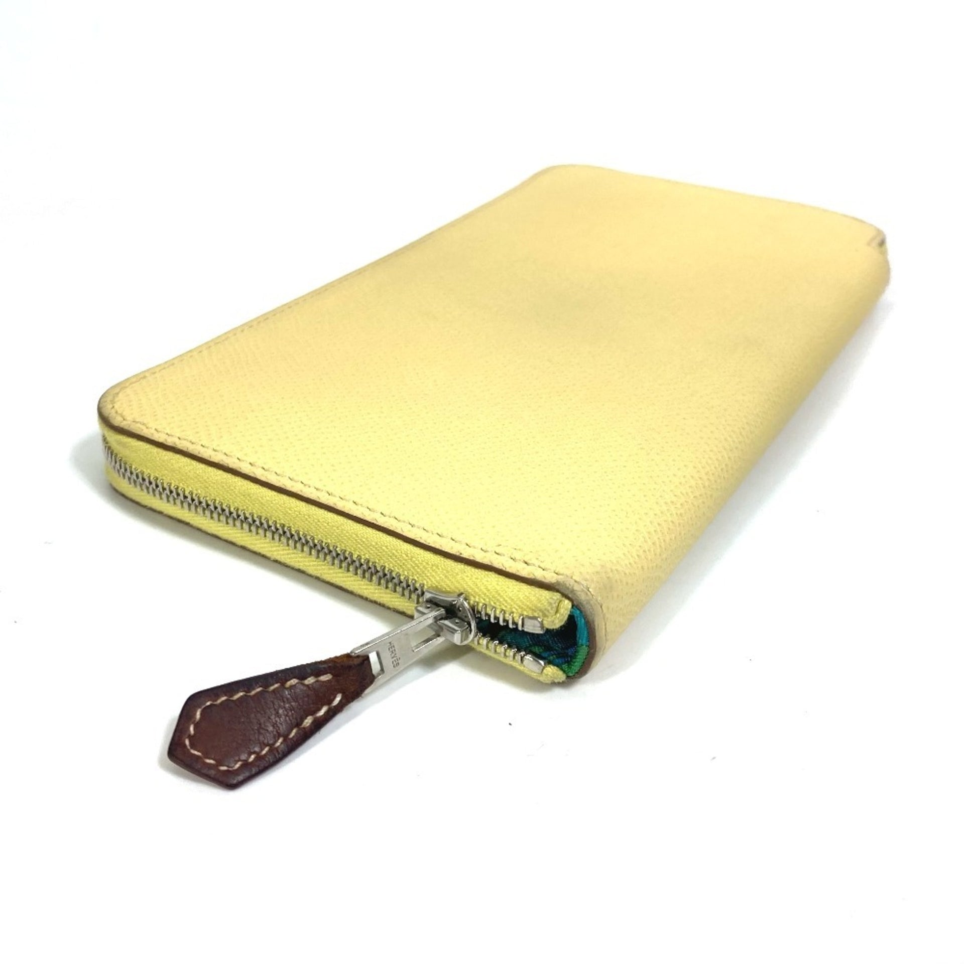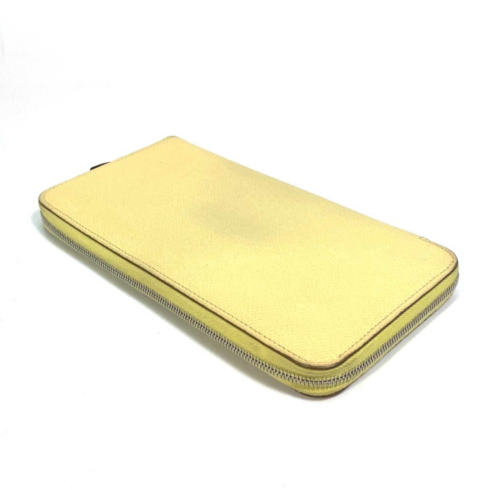 HERMES Azap Long Silk-in Wallet, Round Zipper, Leather, Women\'s, Jaune, Yellow
