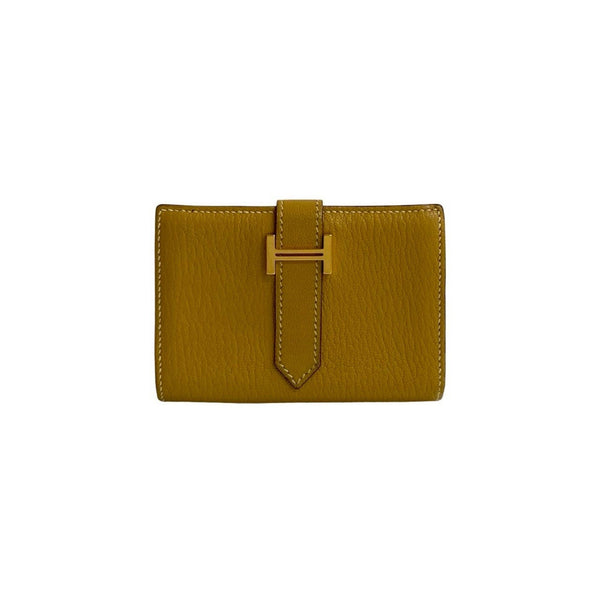 HERMES Bearn Mini Chevre Leather Business Card Case/Card Case, Yellow, 42052