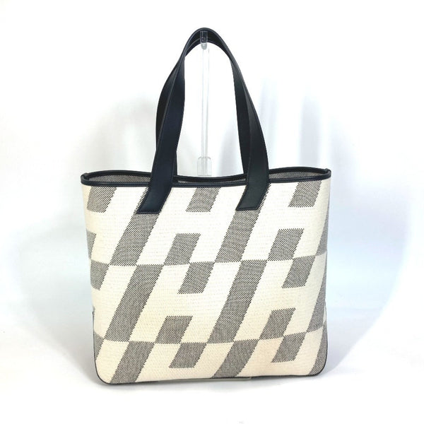 HERMES Cabas Bias H 40 Ambié GM Handbag Tote Canvas/Swift Leather Women\'s Black/White/Gray