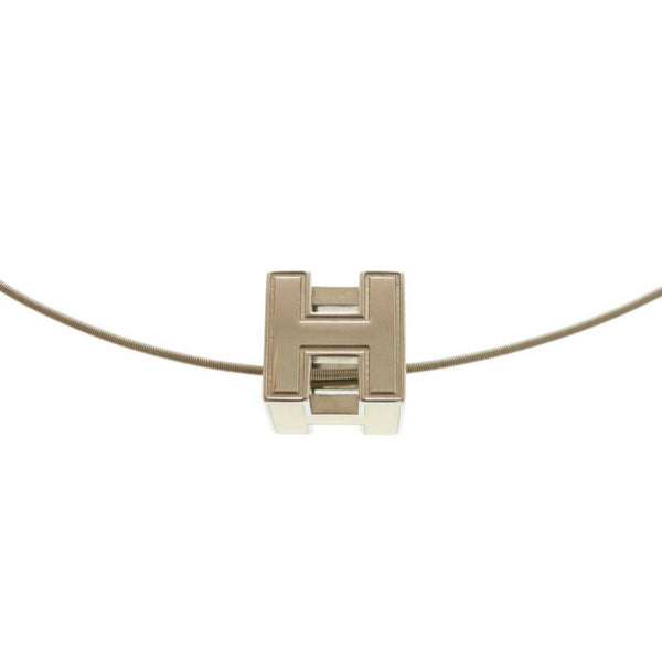 Hermes Cage d\'Ache H Cube Metal Silver Ivory Necklace 1878HERMES