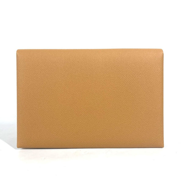 HERMES Calvi GM Flat Pouch with Pouch, Bifold Clutch Bag, Epsom Leather, Unisex, Brown and Pink, Like New