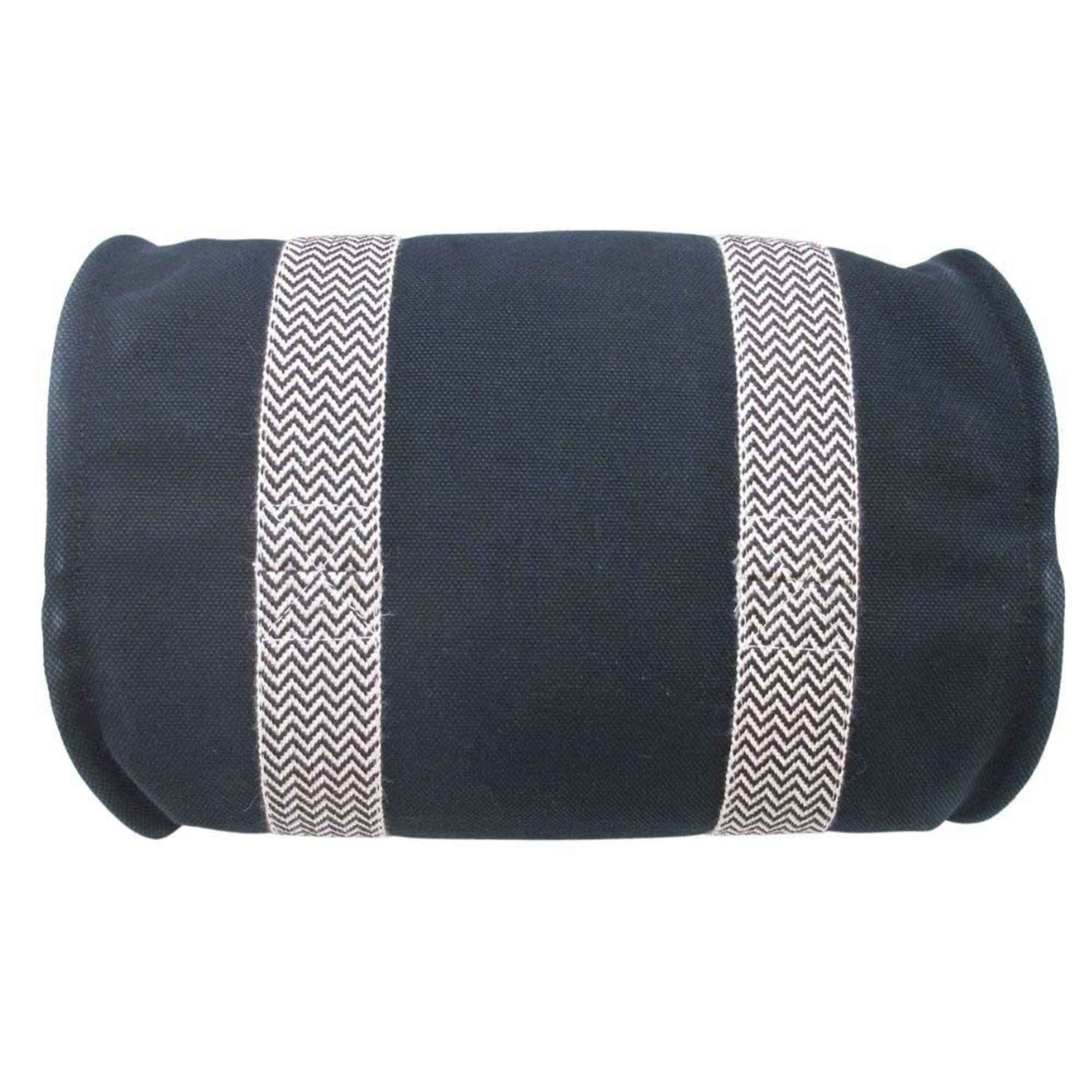 HERMES Cannes PM Handbag Tote Canvas Herringbone with Pouch, Black/Ivory, Women\'s