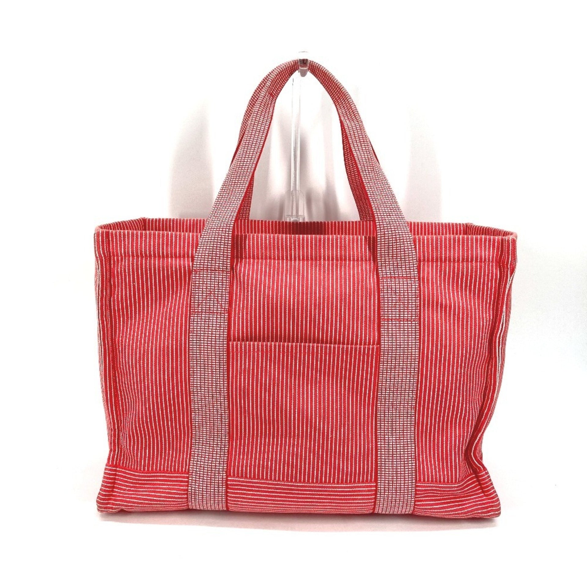 HERMES Caval Horse Cheval Striped Diaper Bag, Shoulder Bag with Pouch, Canvas Tote Kids\' Red