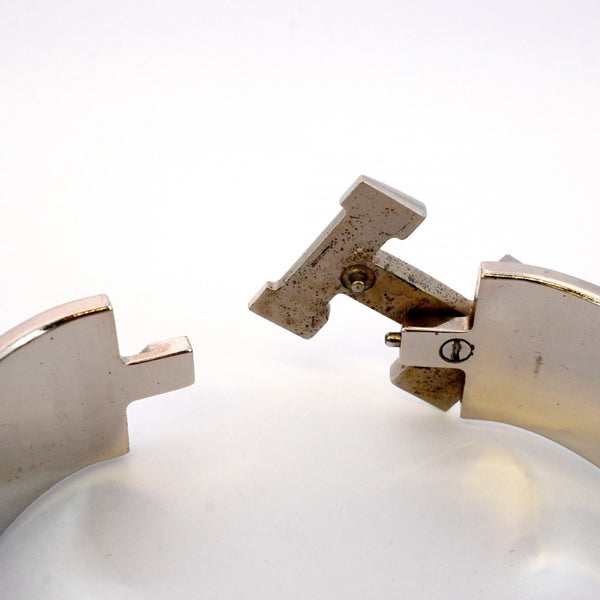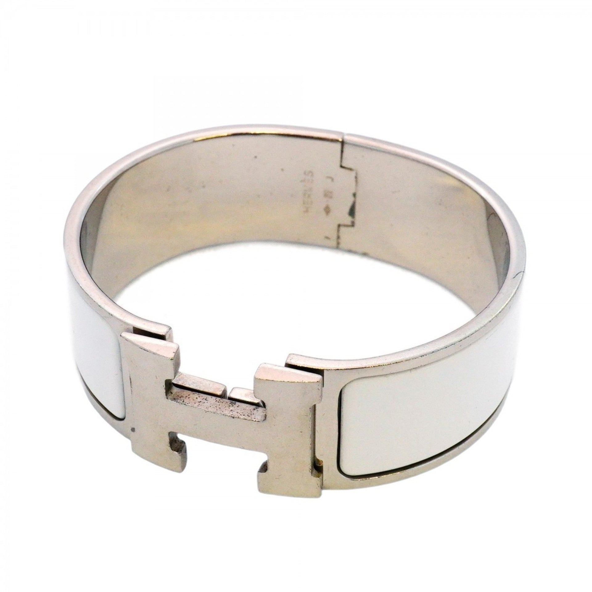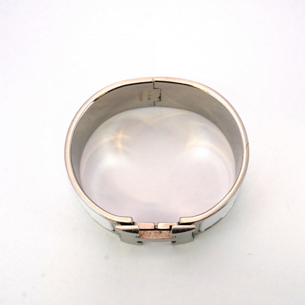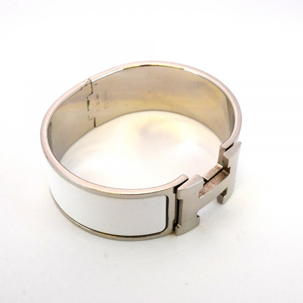 Hermes Click-Clack GM Bangle in Metal, Silver and White, Women\'s, P1560542