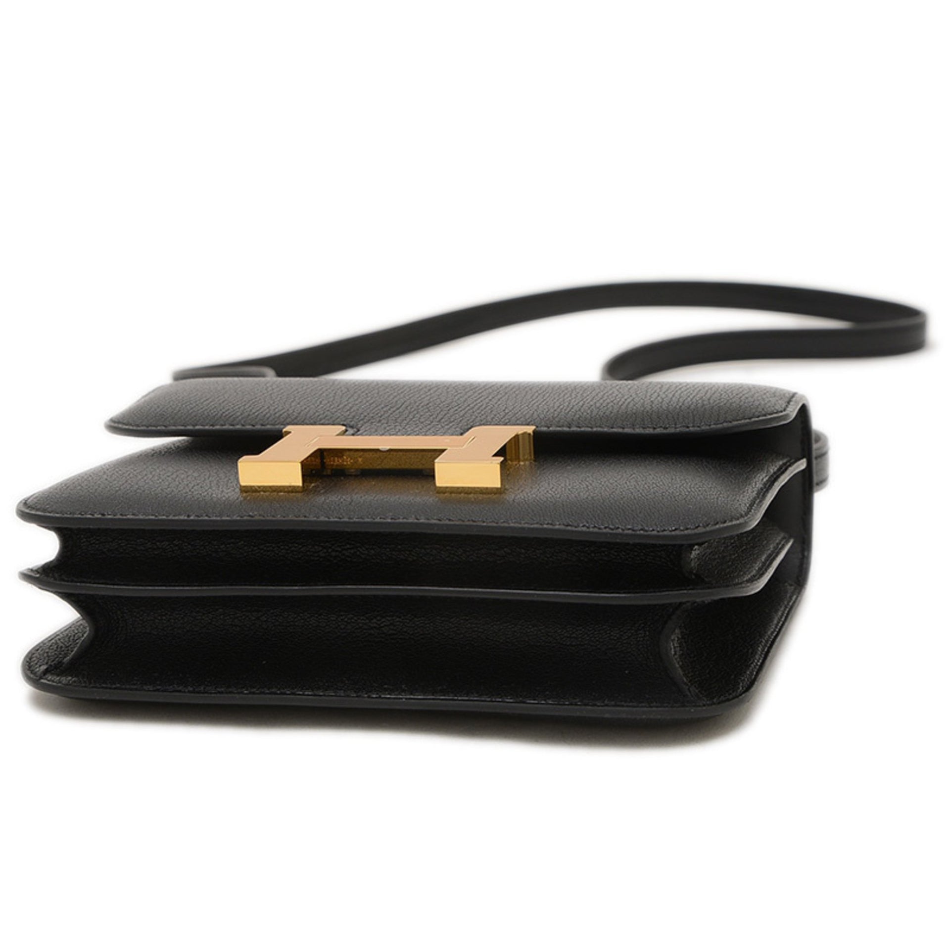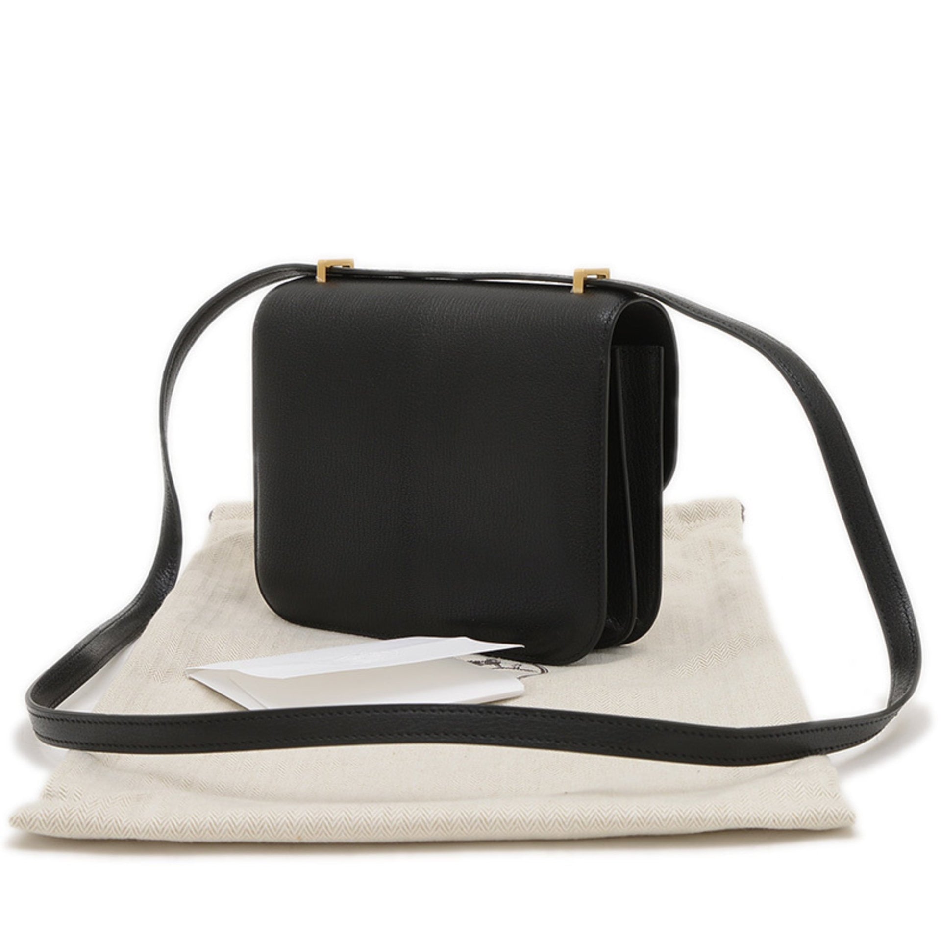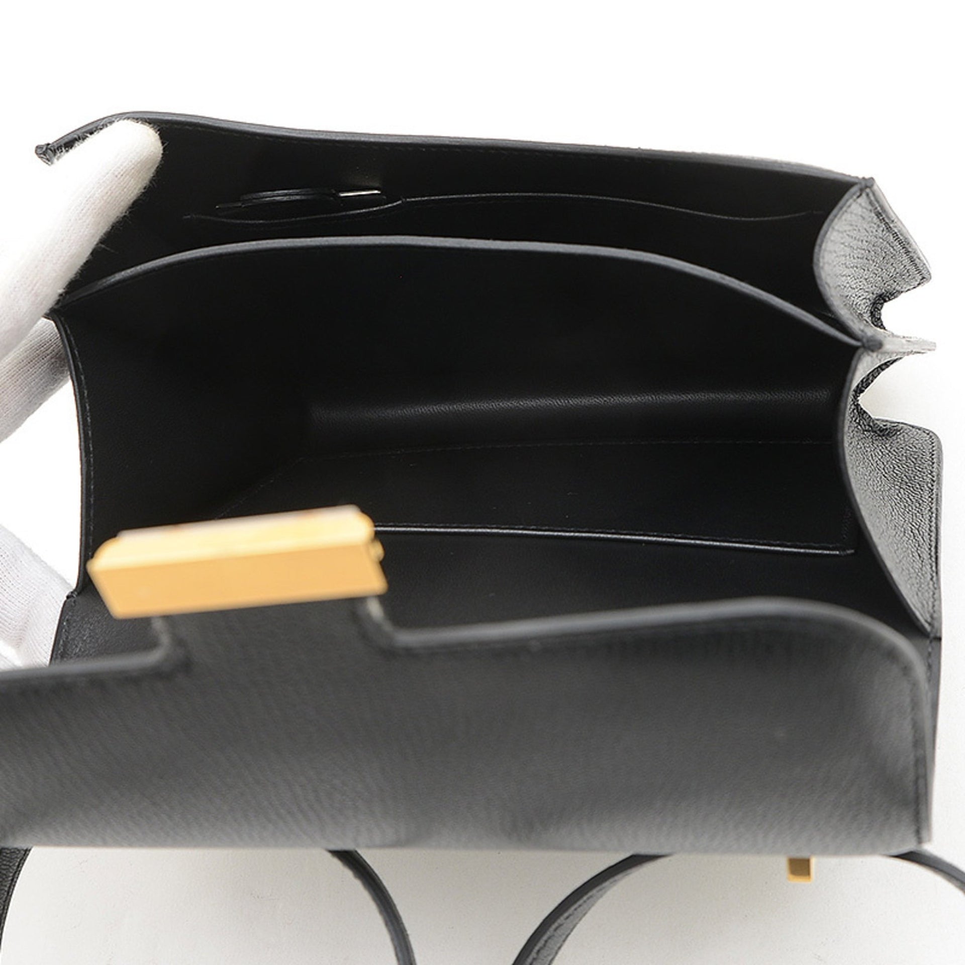 Hermes Constance Mini 18 Shoulder Bag Miroir Chevre Black Gold Hardware W Engraved BP