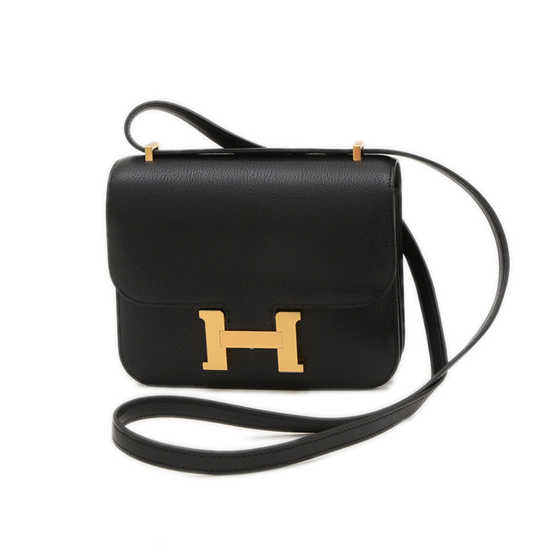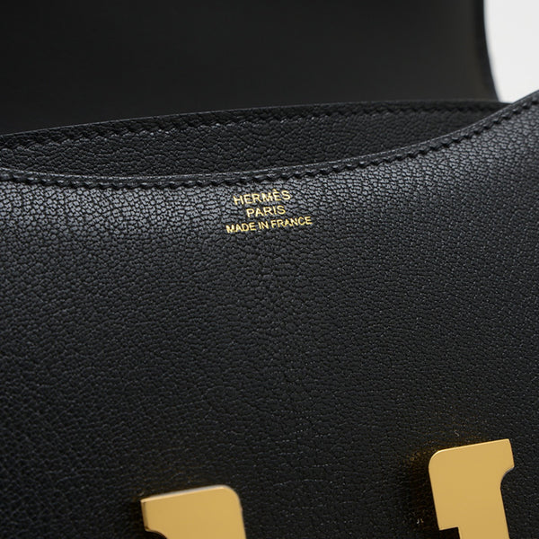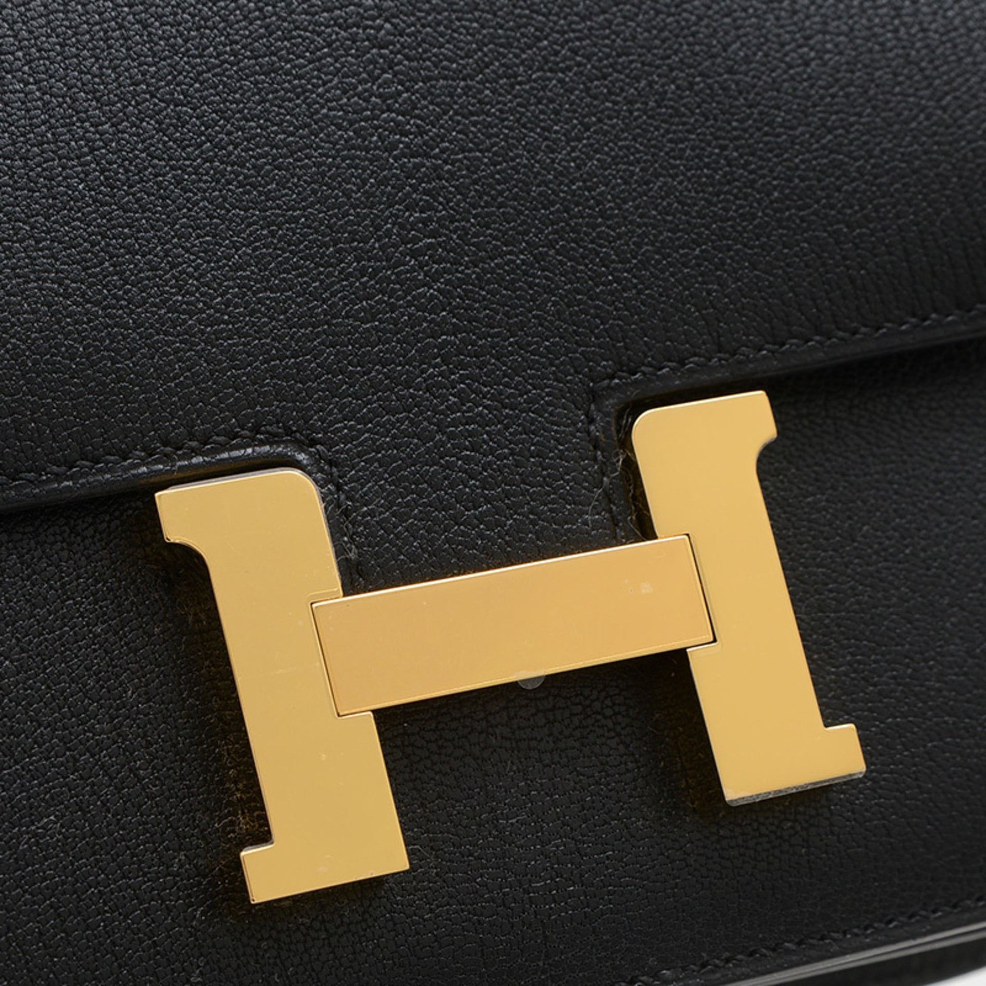 Hermes Constance Mini 18 Shoulder Bag Miroir Chevre Black Gold Hardware W Engraved BP
