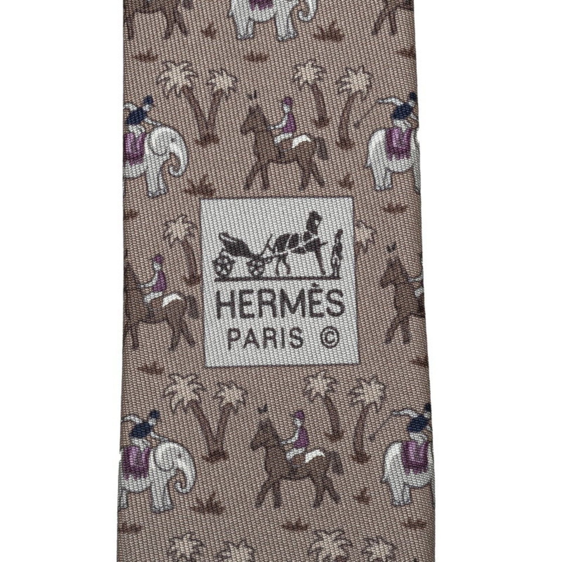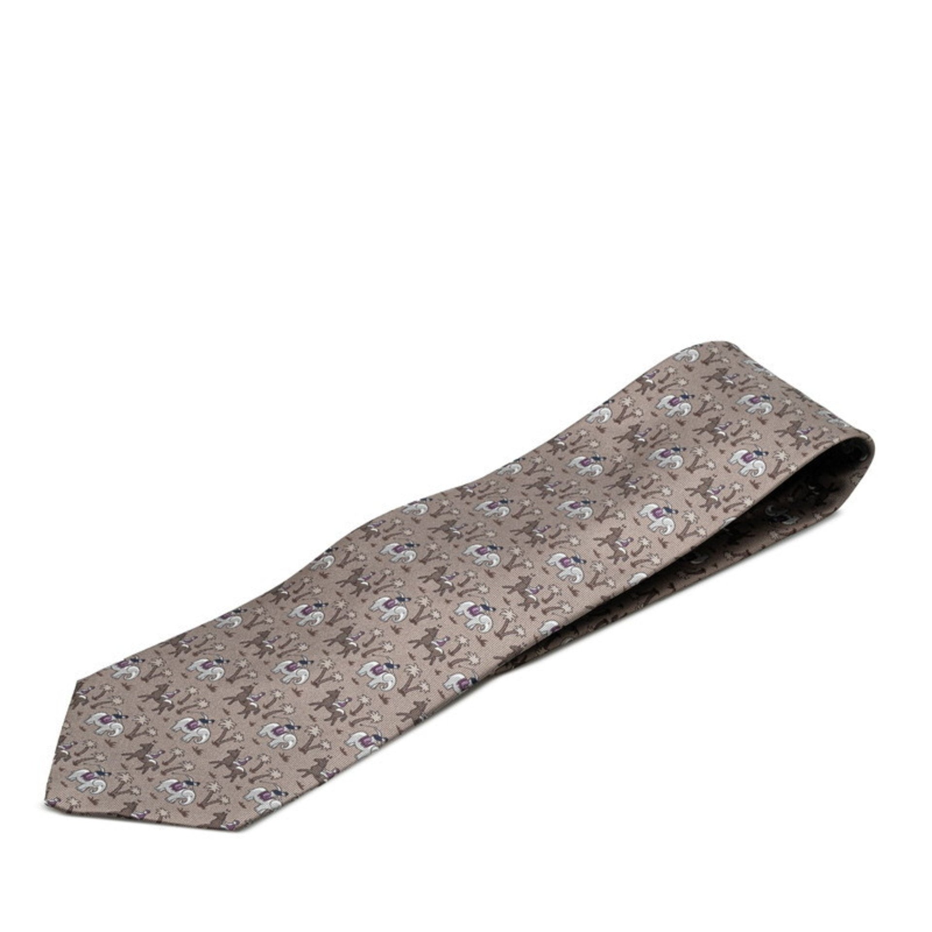 Hermes Elephant and Horse Animal Print Tie Grey Multicolor Silk Men\'s HERMES
