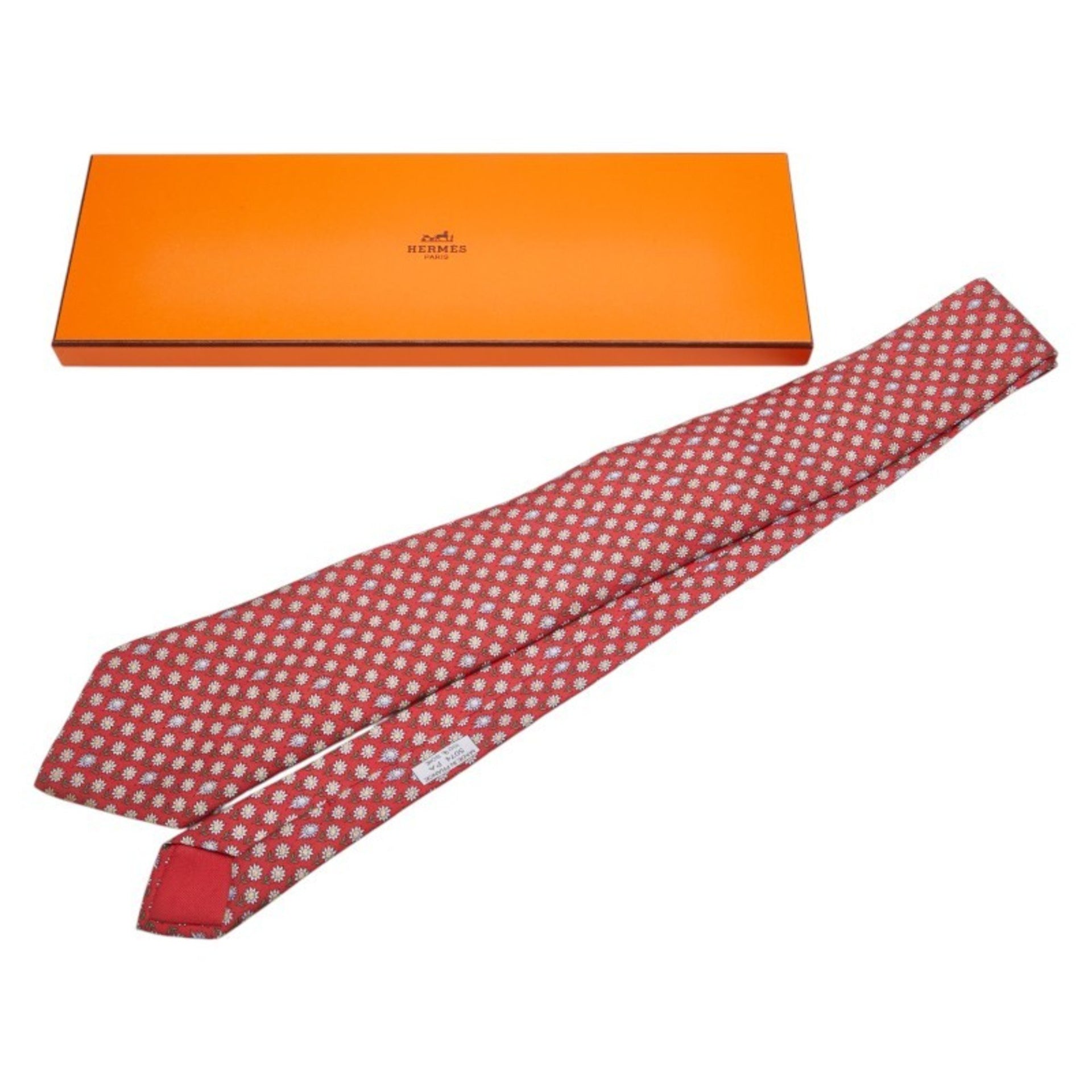 Hermes floral sunflower motif tie in red and multicolored silk for men.