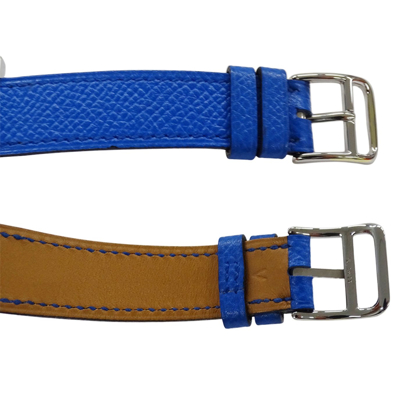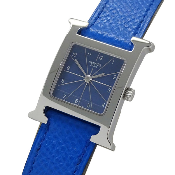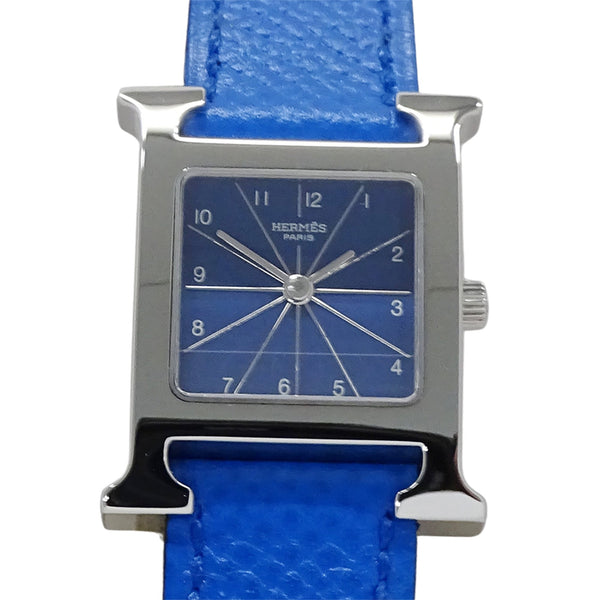 Hermès H Watch Women\'s Quartz QZ Stainless Steel with Leather Strap HH1.210 Silver Blue □B Polished