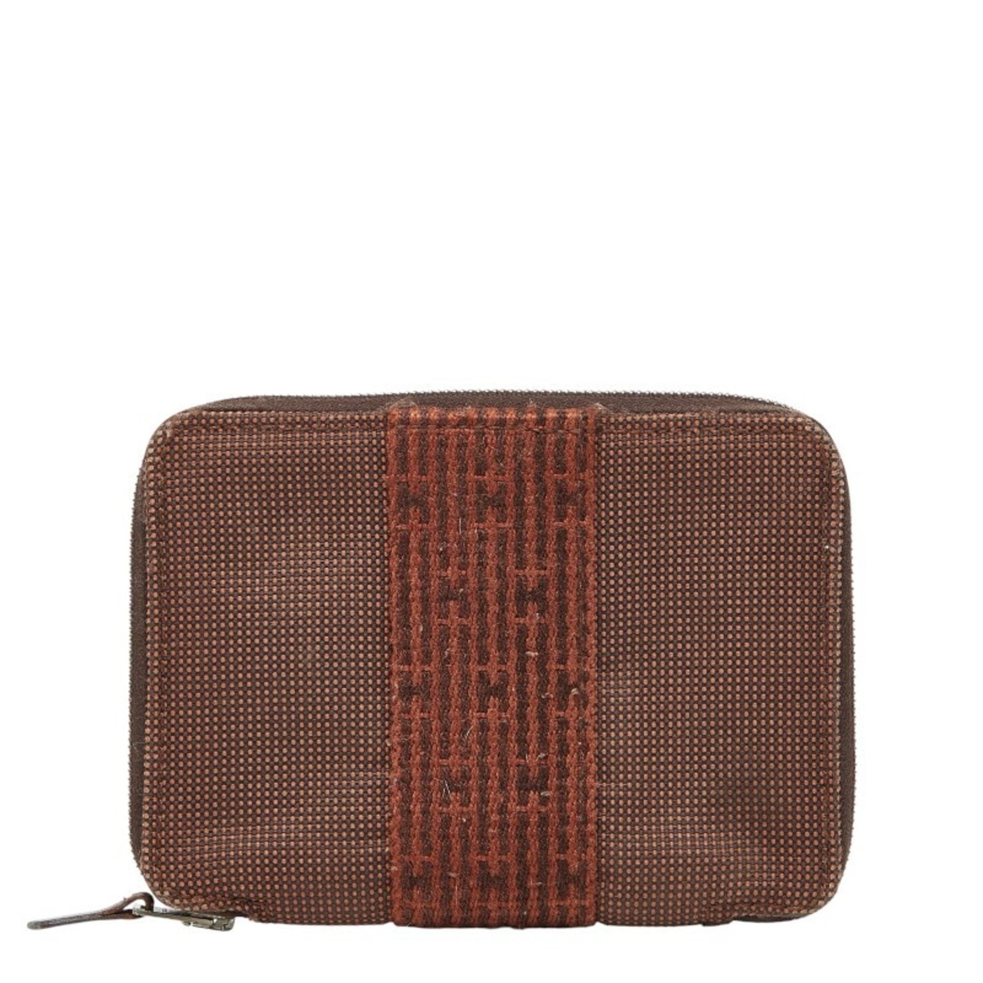 Hermes Hermès Air Line Purse PM Bifold Wallet with Round Zipper, Brown, Silver Hardware, Canvas, Women\'s