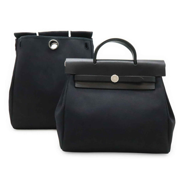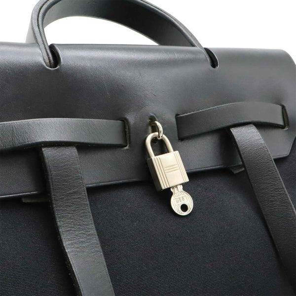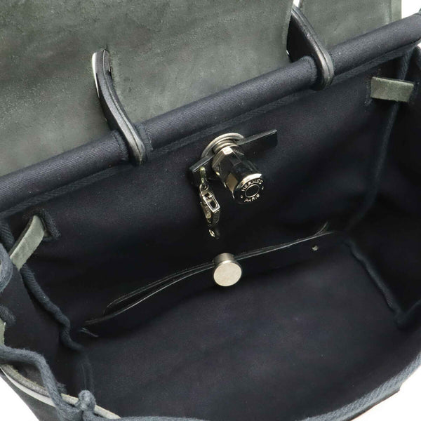 HERMES Hermès Airbag Ad PM Backpack/Handbag Toile Officier Leather Black □D Stamp