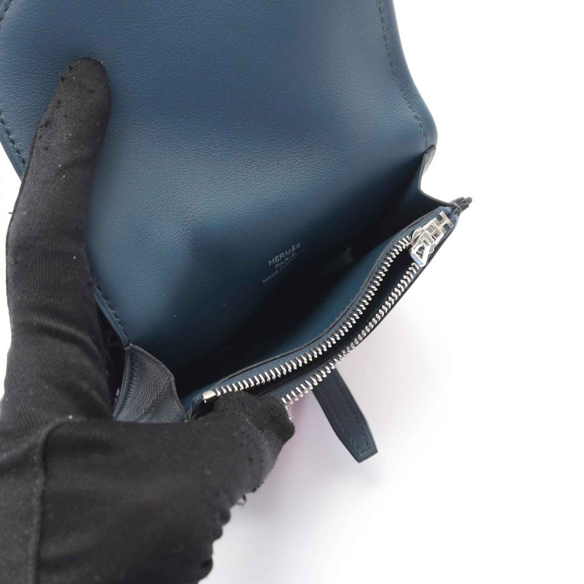 Hermes Hermès Avexois Compact ANIMAPOLIS Wallet/Coin Case, Silk and Leather, Swift Women\'s, Navy, Multicolor, Mykonos Orange