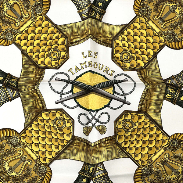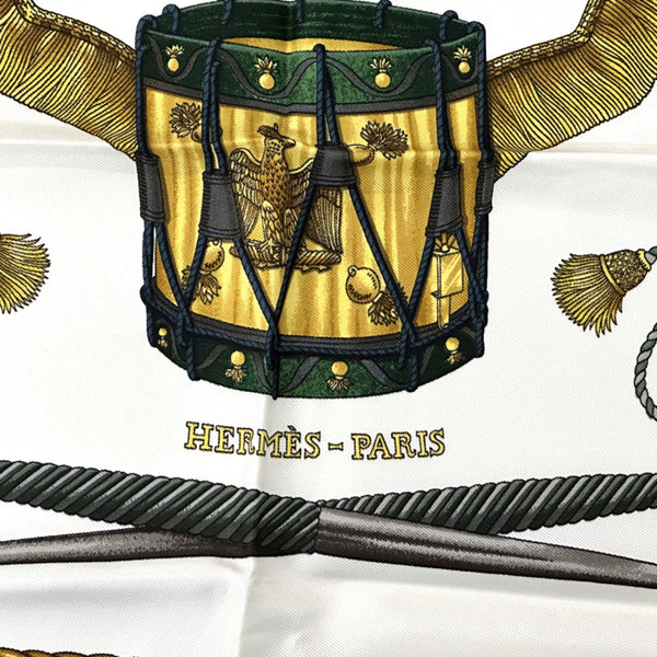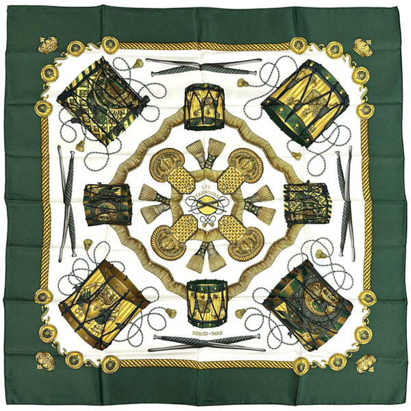 Hermès HERMES Carré 90 LES TAMBOURS scarf, women\'s silk green multicolor, large size.