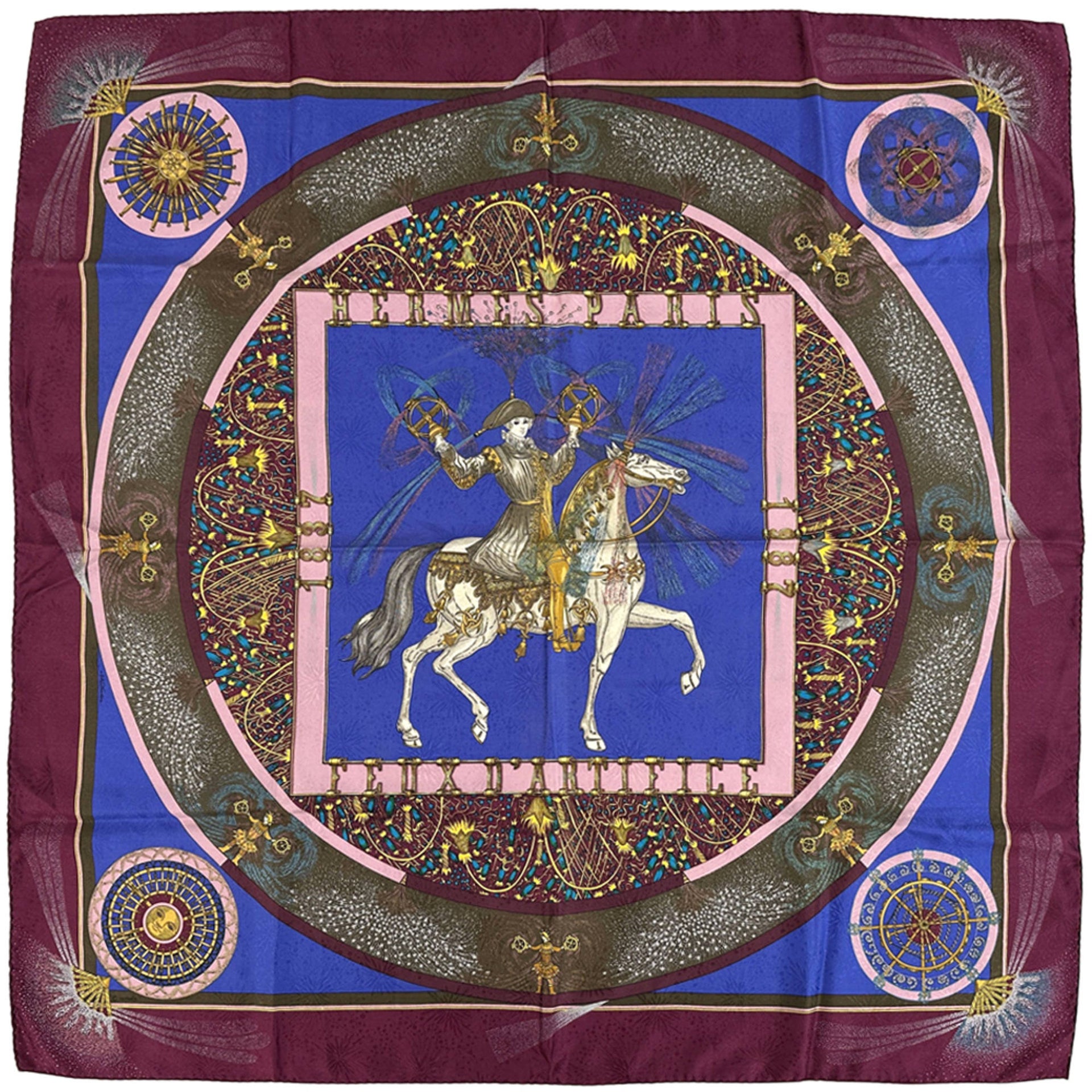 Hermes Hermès FEUX D\'ARTIFICE Carré 90 Scarf, Women\'s Silk, Wine Red, Blue, Multicolor, Horse, Fireworks, Large