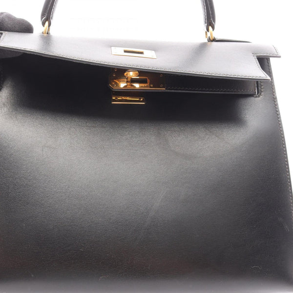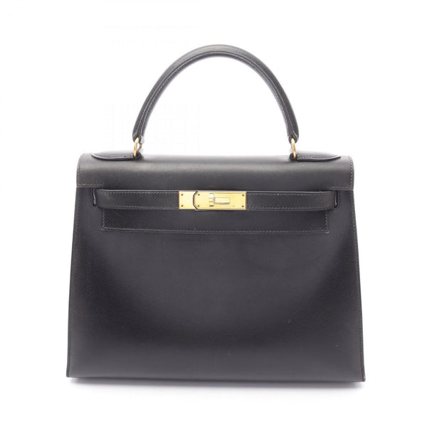 Hermes Hermès Kelly 28 handbag in box calf leather, black.