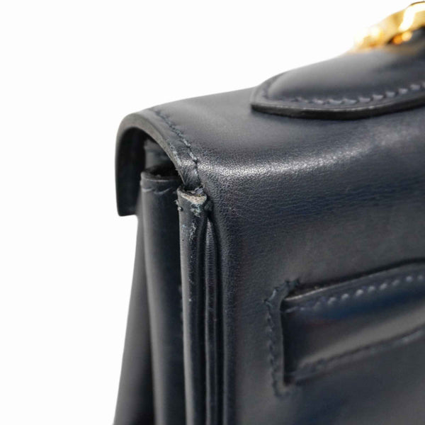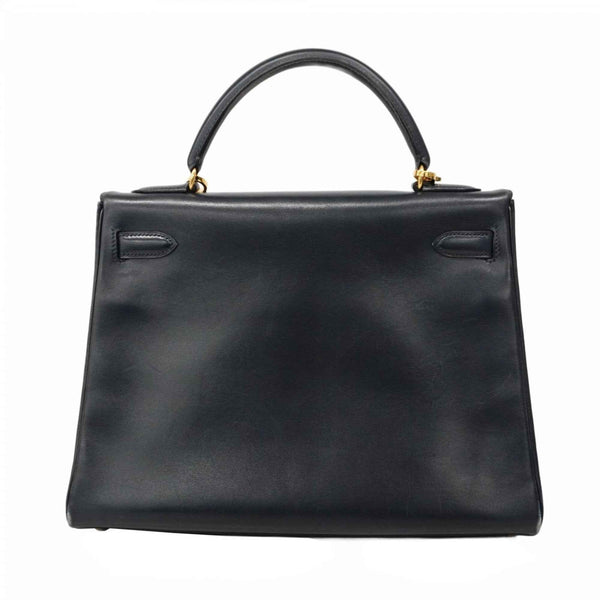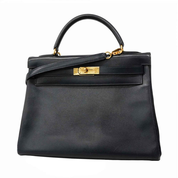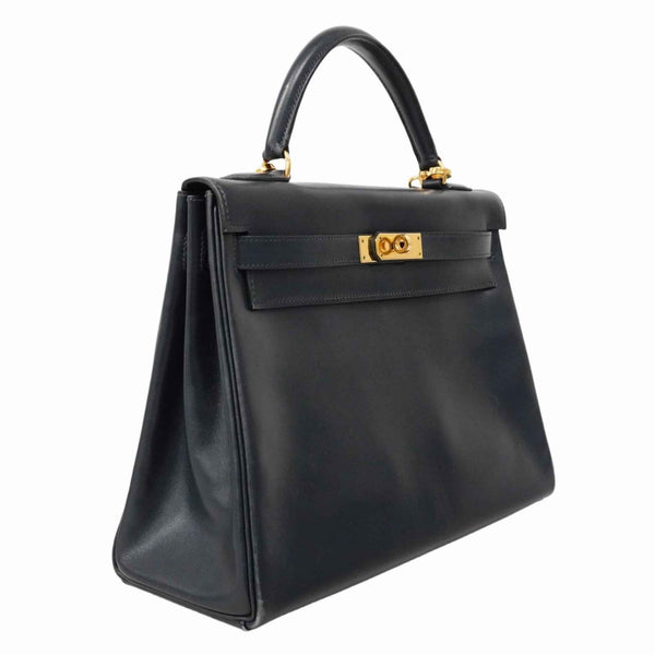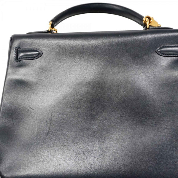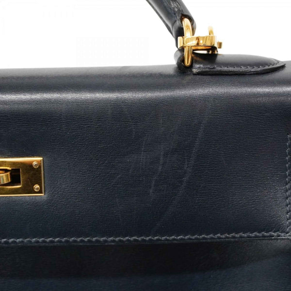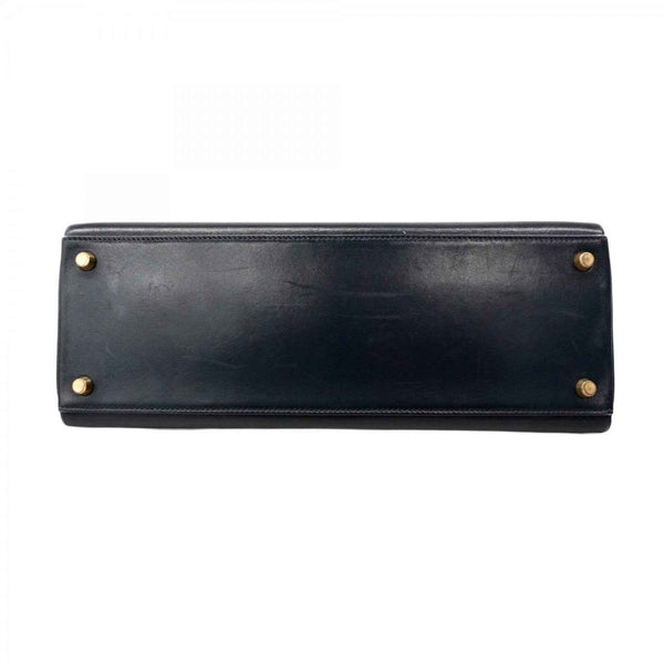 Hermes Hermès Kelly 32 Handbag, Box Calf Leather, Navy, with \"Y\" Stamp, 2-Way Bag for Women