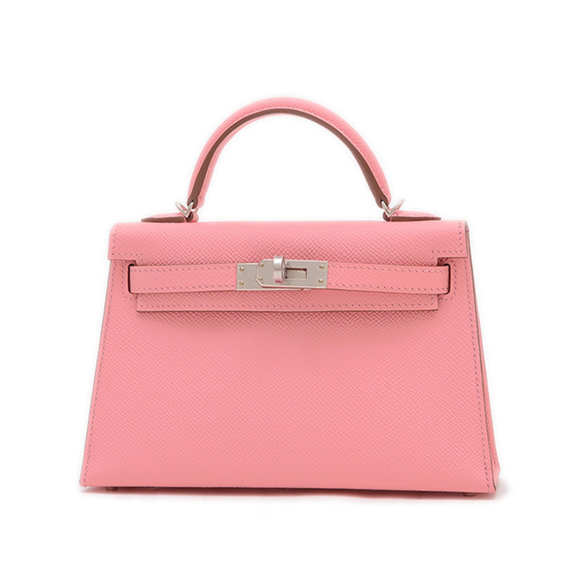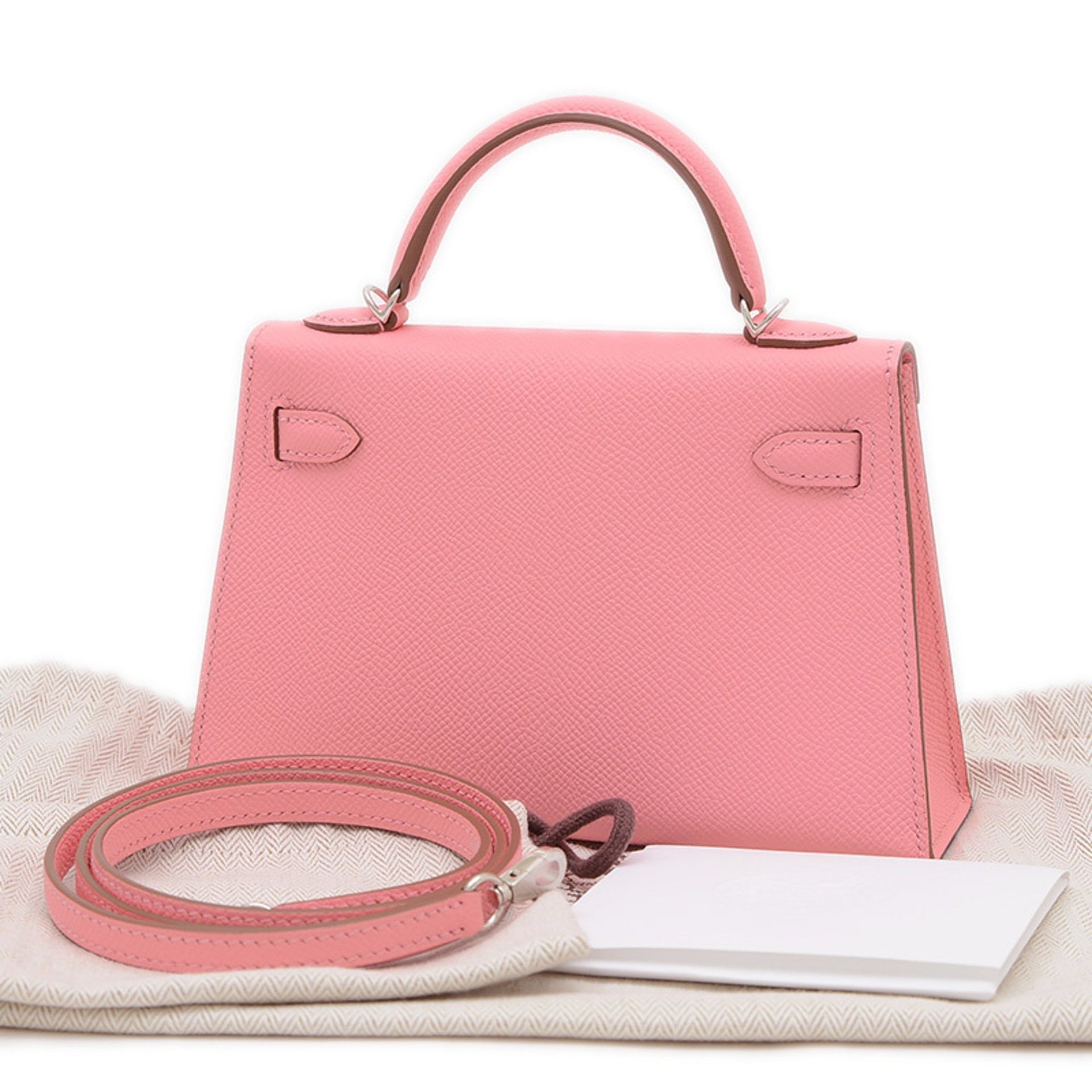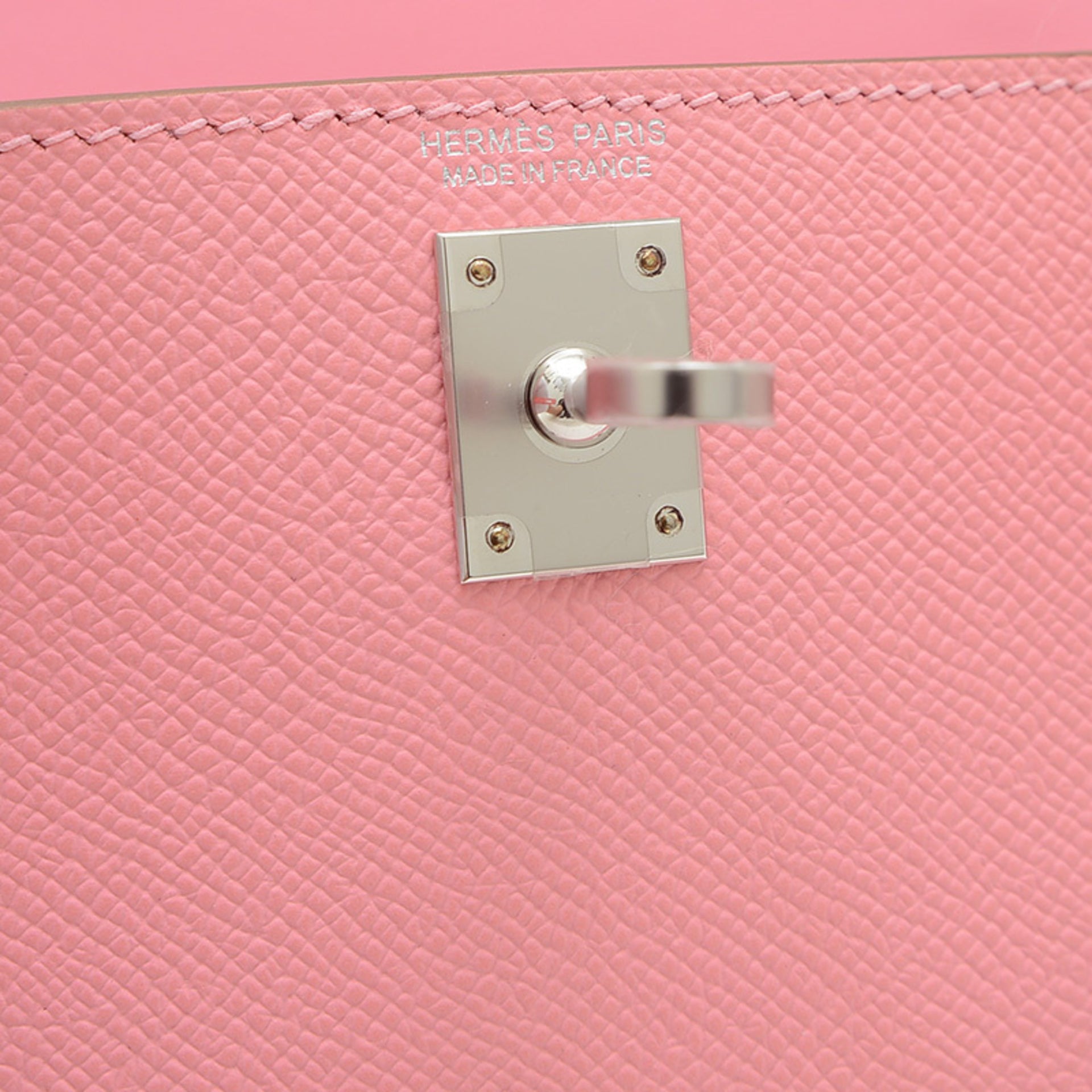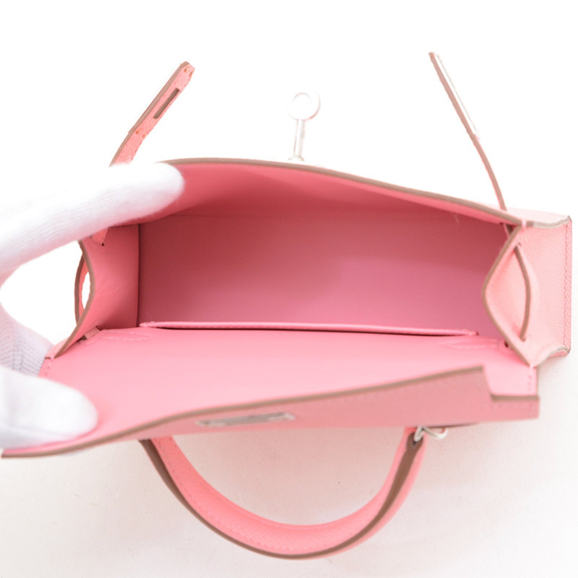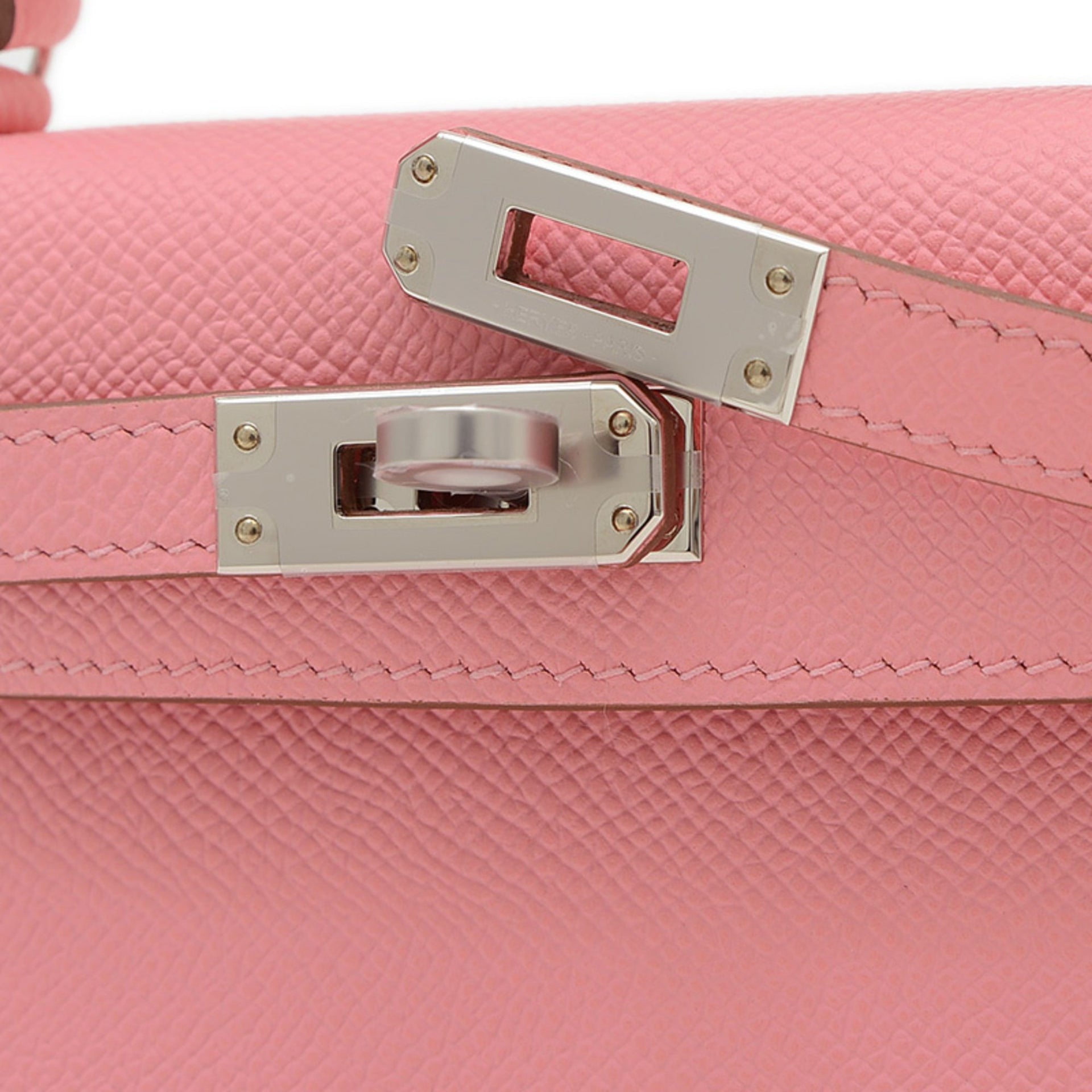 Hermes Hermès Kelly Mini Dou 2 Handbag, Epson Rose Confetti, Silver Hardware, K Stamp, BP