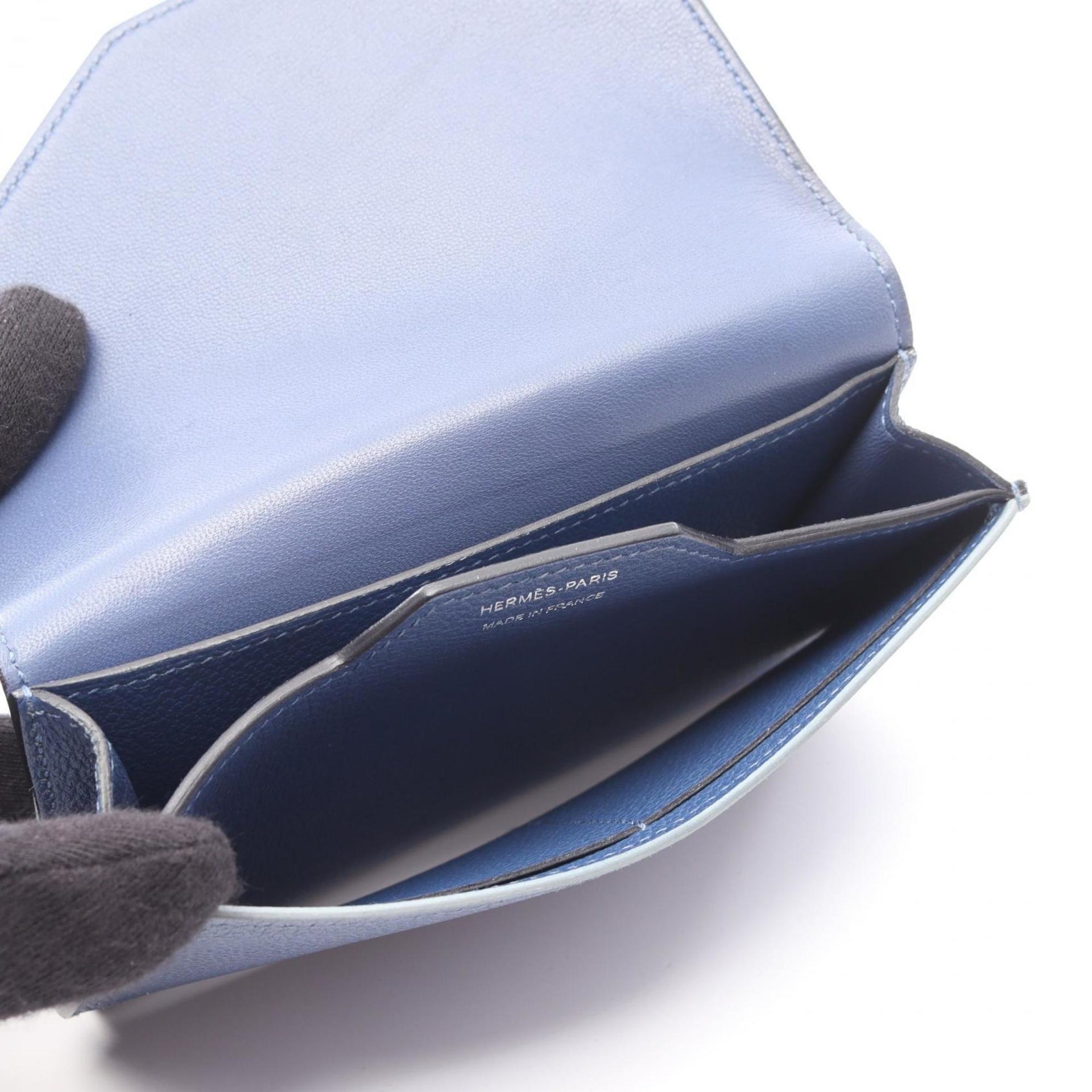 Hermes Hermès Passant Compact Bifold Wallet in Calfskin Evercalf Leather, Blue, for Women