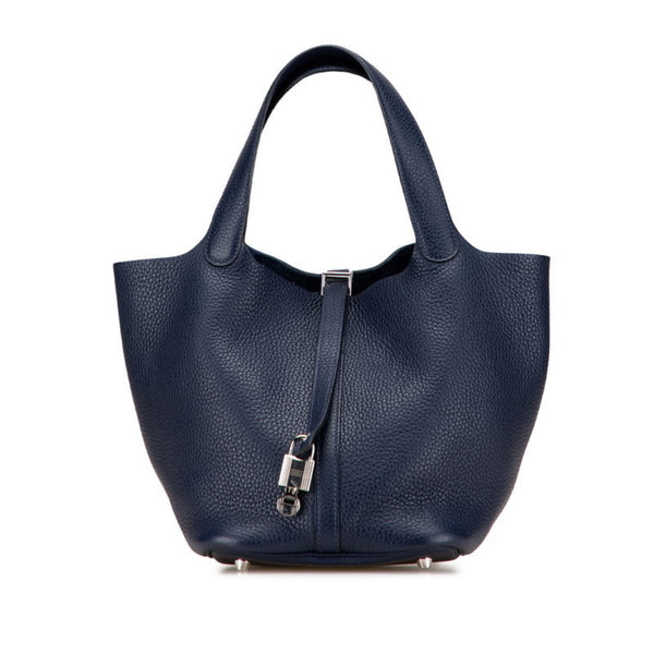 Hermes Hermès Picotin Lock MM Handbag in Bleu Nuit, Navy, and Taurillon Clemence Leather for Women