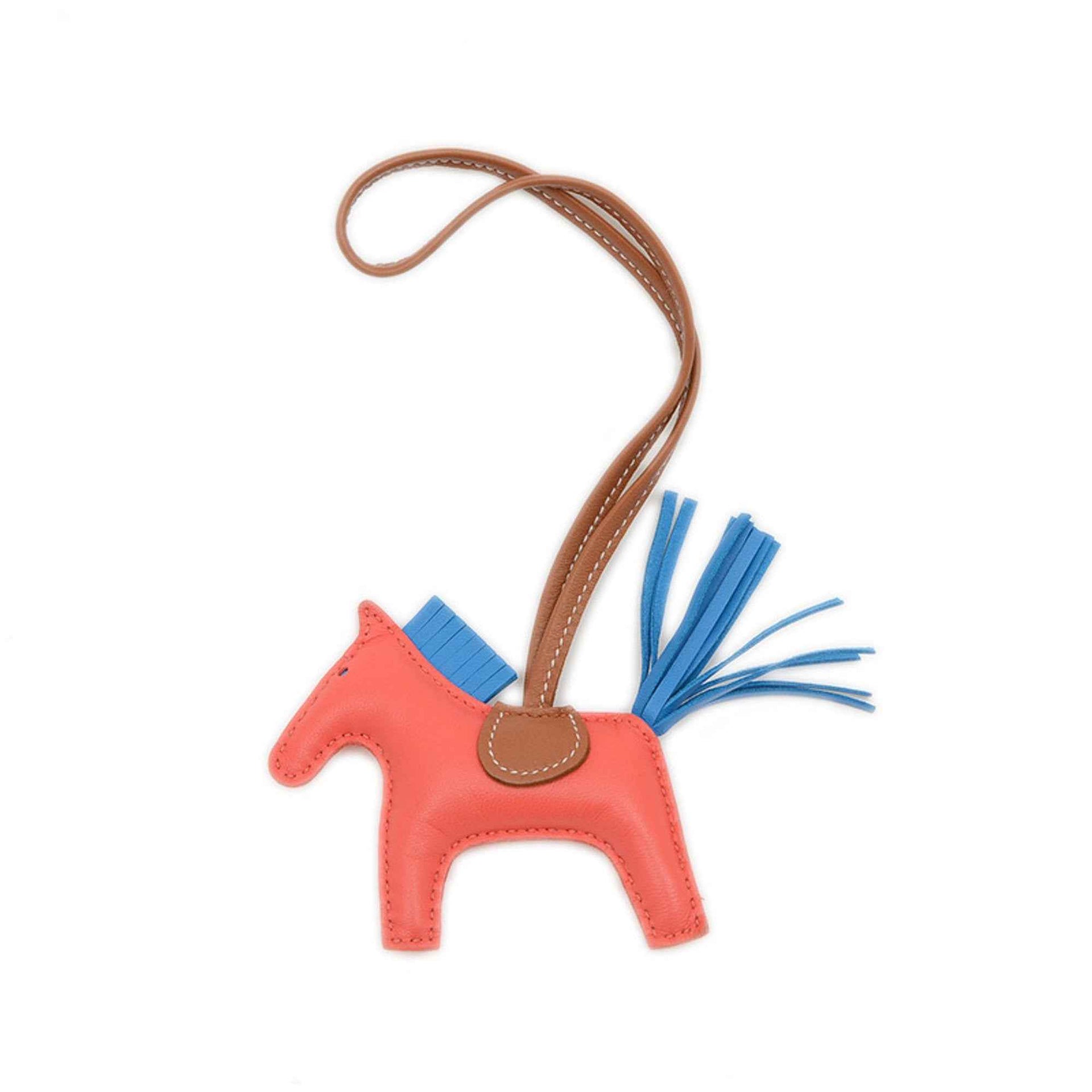 Hermes Hermès Rodeo PM Bag Charm, Rose Texas, Blue Zanzibar, Gold, Y Stamp